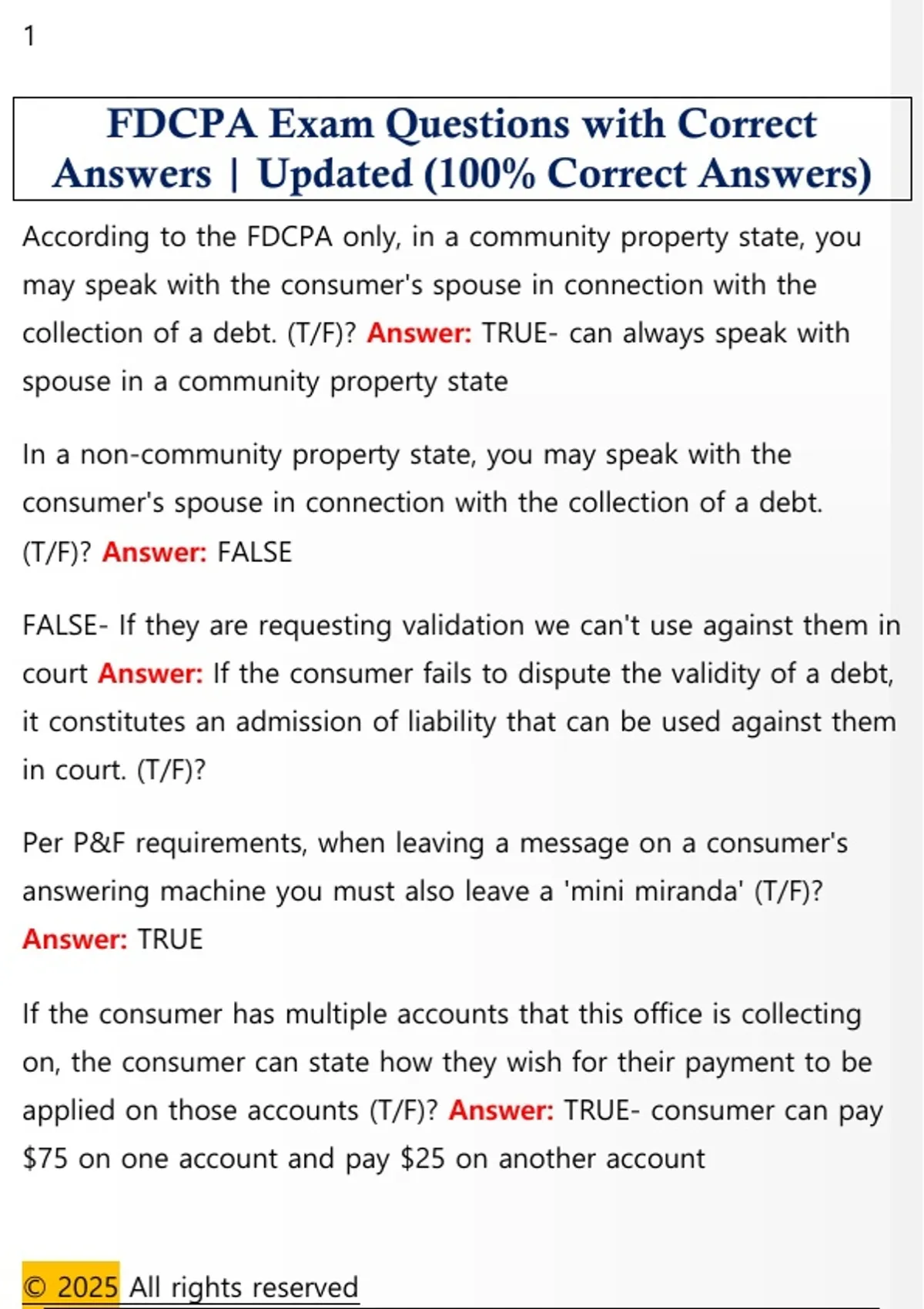 FDCPA Exam Questions with Correct