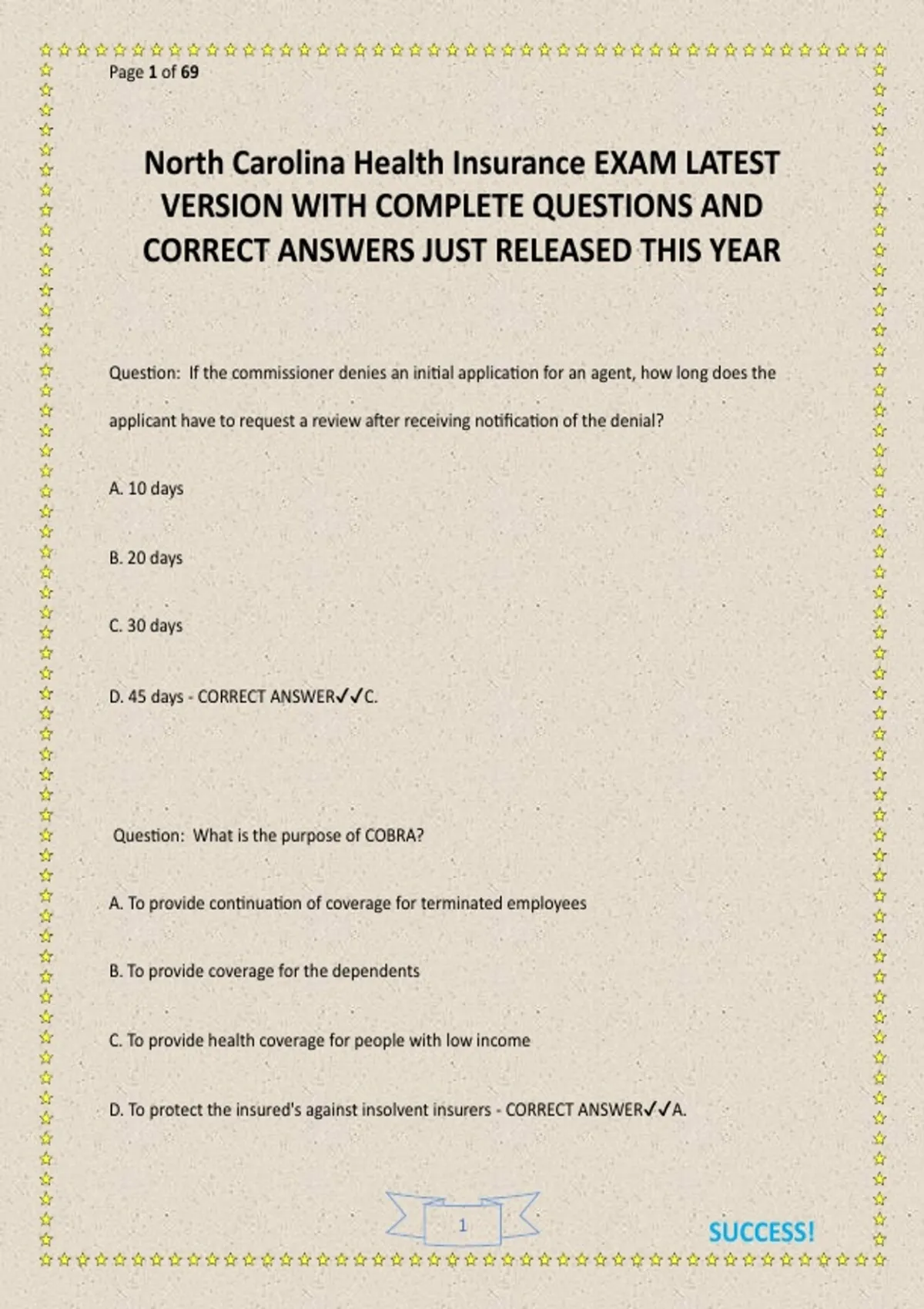 North Carolina Health Insurance EXAM LATEST VERSION WITH COMPLETE QUESTIONS AND CORRECT ANSWERS JUST RELEASED THIS YEAR