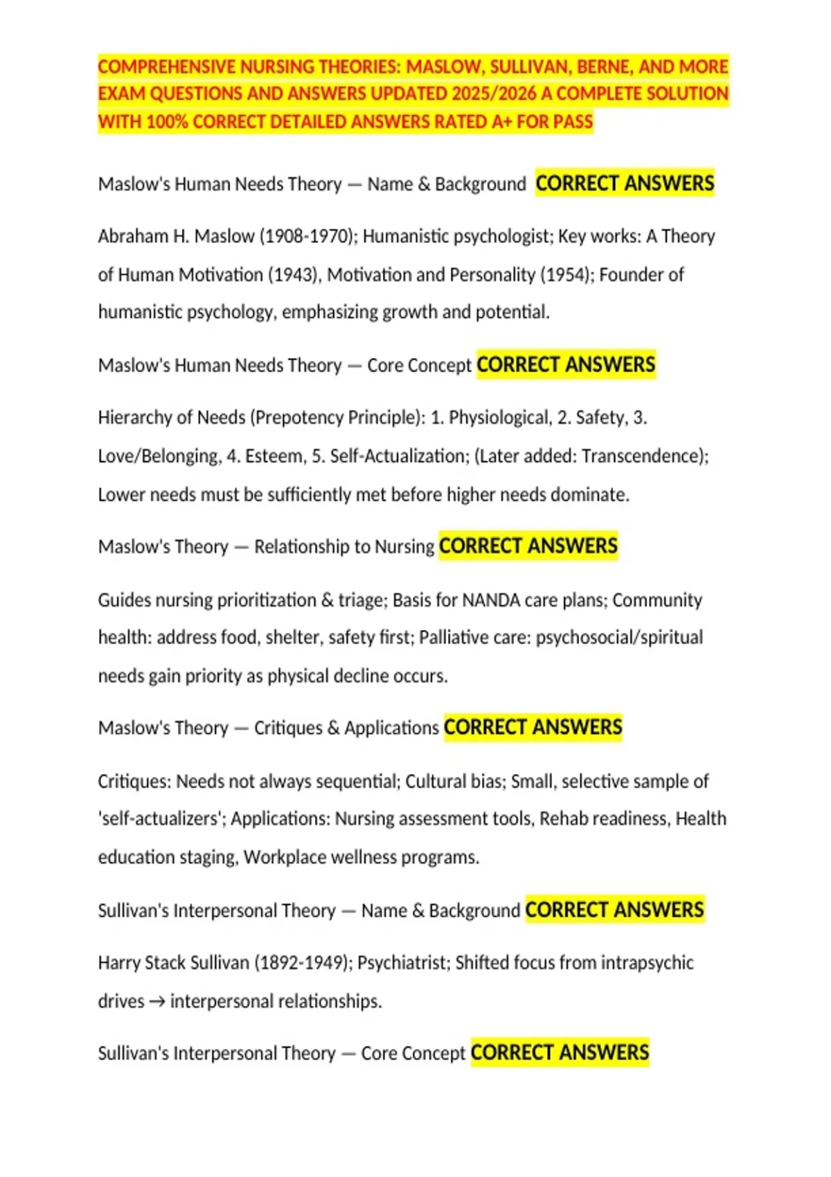 COMPREHENSIVE NURSING THEORIES: MASLOW, SULLIVAN, BERNE, AND MORE