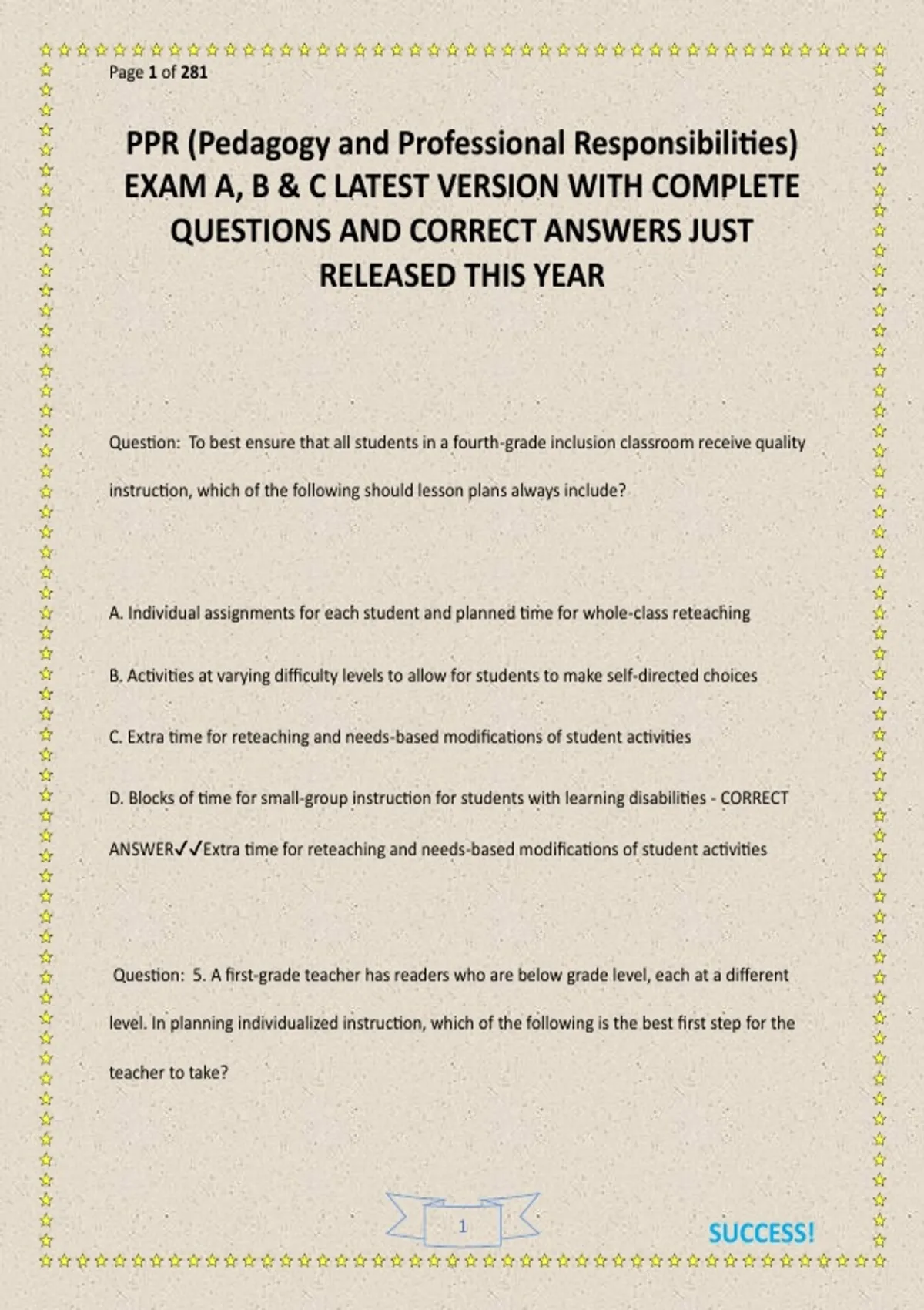 PPR (Pedagogy and Professional Responsibilities) EXAM A, B & C LATEST VERSION WITH COMPLETE QUESTIONS AND CORRECT ANSWERS JUST RELEASED THIS YEAR