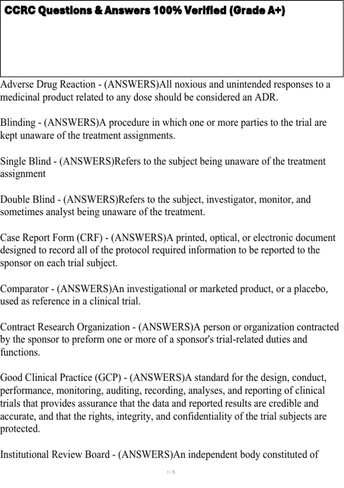 , CCRC Questions & Answers 100% Verified (Grade A+)