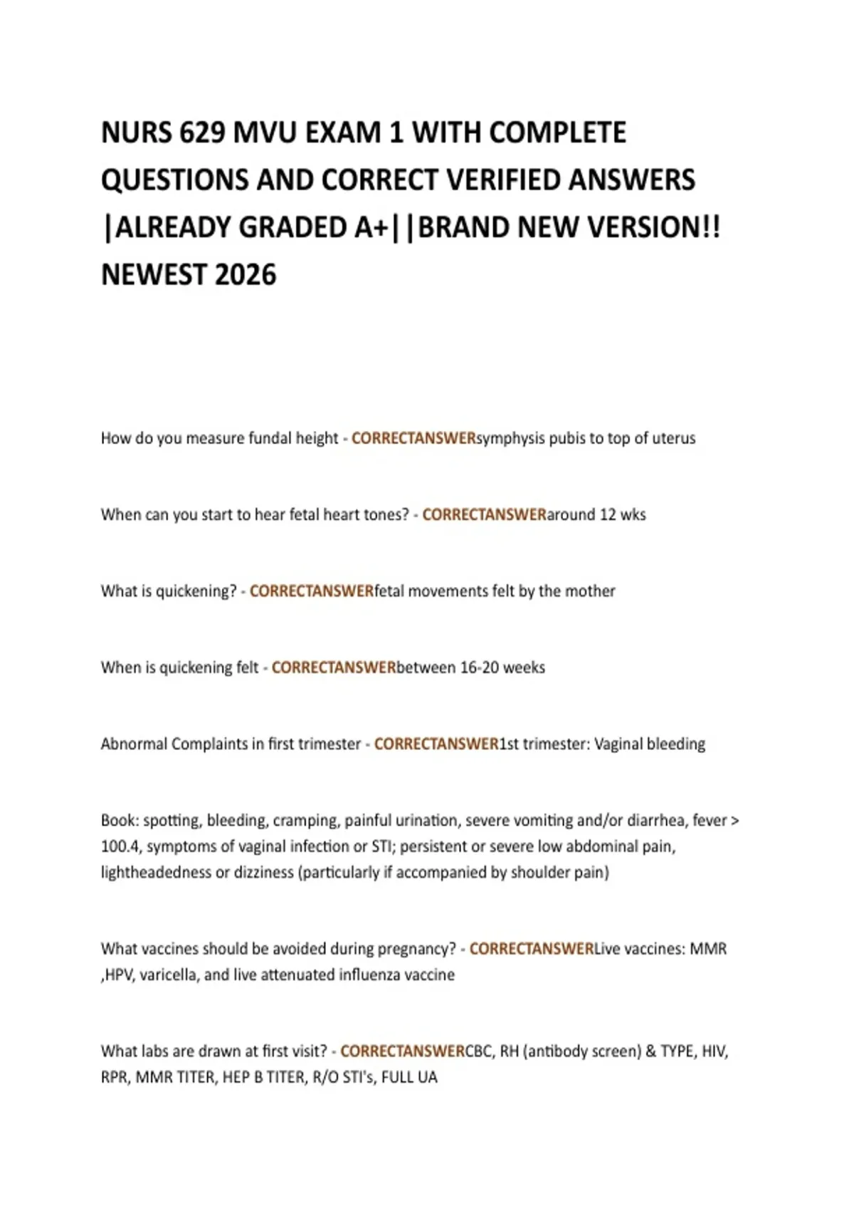 NURS 629 MVU EXAM 1 WITH COMPLETE QUESTIONS AND CORRECT VERIFIED ANSWERS |ALREADY GRADED A+||BRAND NEW VERSION!! NEWEST 2026