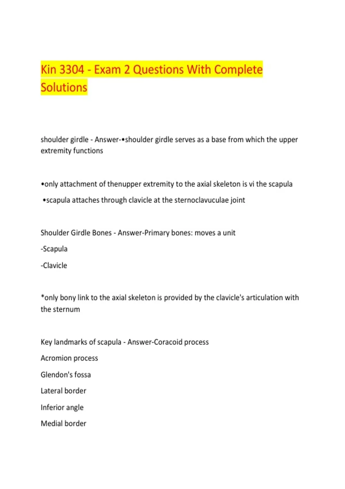 Kin 3304 - Exam 2 Questions With Complete Solutions