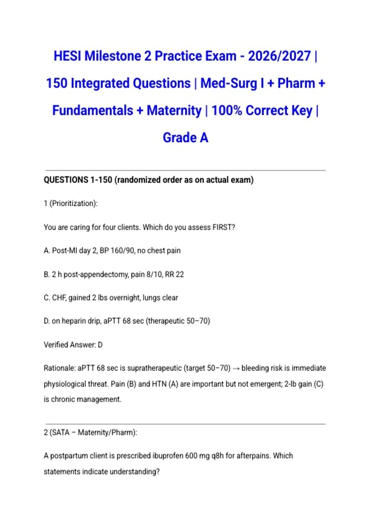 QUESTIONS 1-150 (randomized order as on actual exam)
