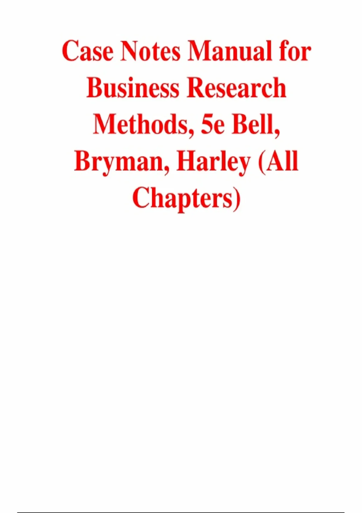 Business Research Methods, 5th Edition – Emma Bell, Alan Bryman, Bill Harley – ISBN 9780198809876 – Case Notes Manual (All Chapters Covered 1–27). This Case Notes Manual provides a comprehensive analysis of the real-world applications and study cases for the 5th edition of Business Research Methods. The curriculum is organized into four parts: Part 1: The Research Process includes Chapter 1: The nature and process of business research; Chapter 2: Business research strategies; Chapter 3: Research designs; Chapter 4: Planning a research project and developing research questions; Chapter 5: Getting started: reviewing the literature; Chapter 6: Ethics in business research; and Chapter 7: Writing up business research. Part 2: Quantitative Research covers Chapter 8: The nature of quantitative research; Chapter 9: Sampling in quantitative research; Chapter 10: Structured interviewing; Chapter 11: Self-completion questionnaires; Chapter 12: Asking questions; Chapter 13: Quantitative research using naturally occurring data: structured observation and content analysis; Chapter 14: Secondary analysis and official statistics; Chapter 15: Quantitative data analysis; and Chapter 16: Using IBM SPSS statistics. Part 3: Qualitative Research examines Chapter 17: The nature of qualitative research; Chapter 18: Sampling in qualitative research; Chapter 19: Ethnography and participant observation; Chapter 20: Interviewing in qualitative research; Chapter 21: Focus groups; Chapter 22: Language in qualitative research; Chapter 23: Documents as sources of data; Chapter 24: Qualitative data analysis; and Chapter 25: Computer-assisted qualitative data analysis: using NVivo. Part 4: Mixed Methods Research explores Chapter 26: Breaking down the quantitative/qualitative divide; and Chapter 27: Mixed methods research.