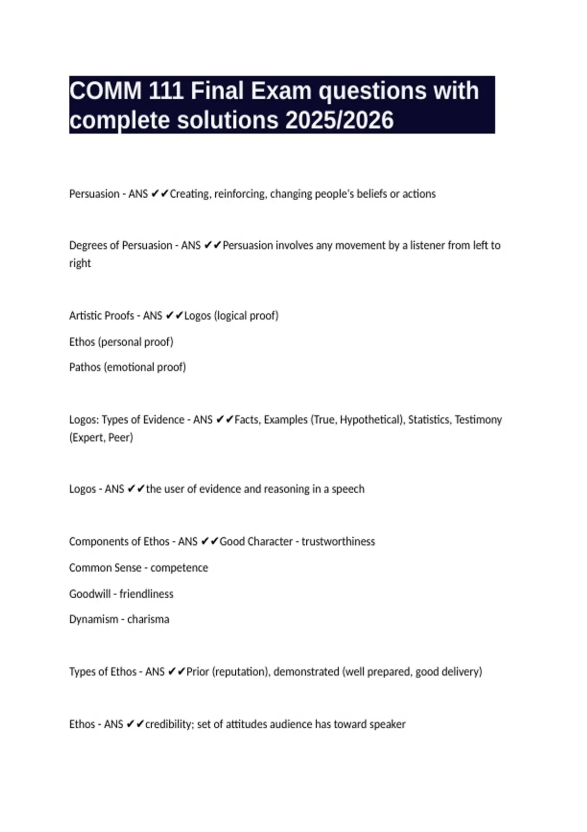 COMM 111 Final Exam questions with complete solutions 2025/2026