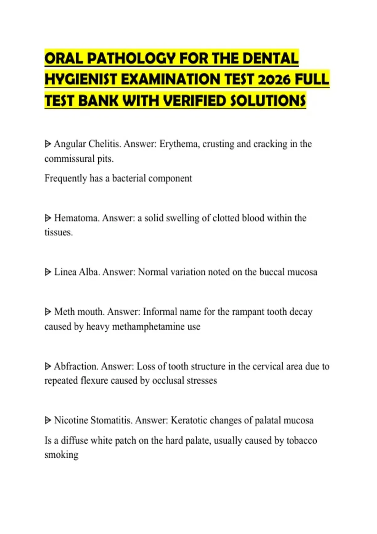 HYGIENIST EXAMINATION TEST 2026 FULL