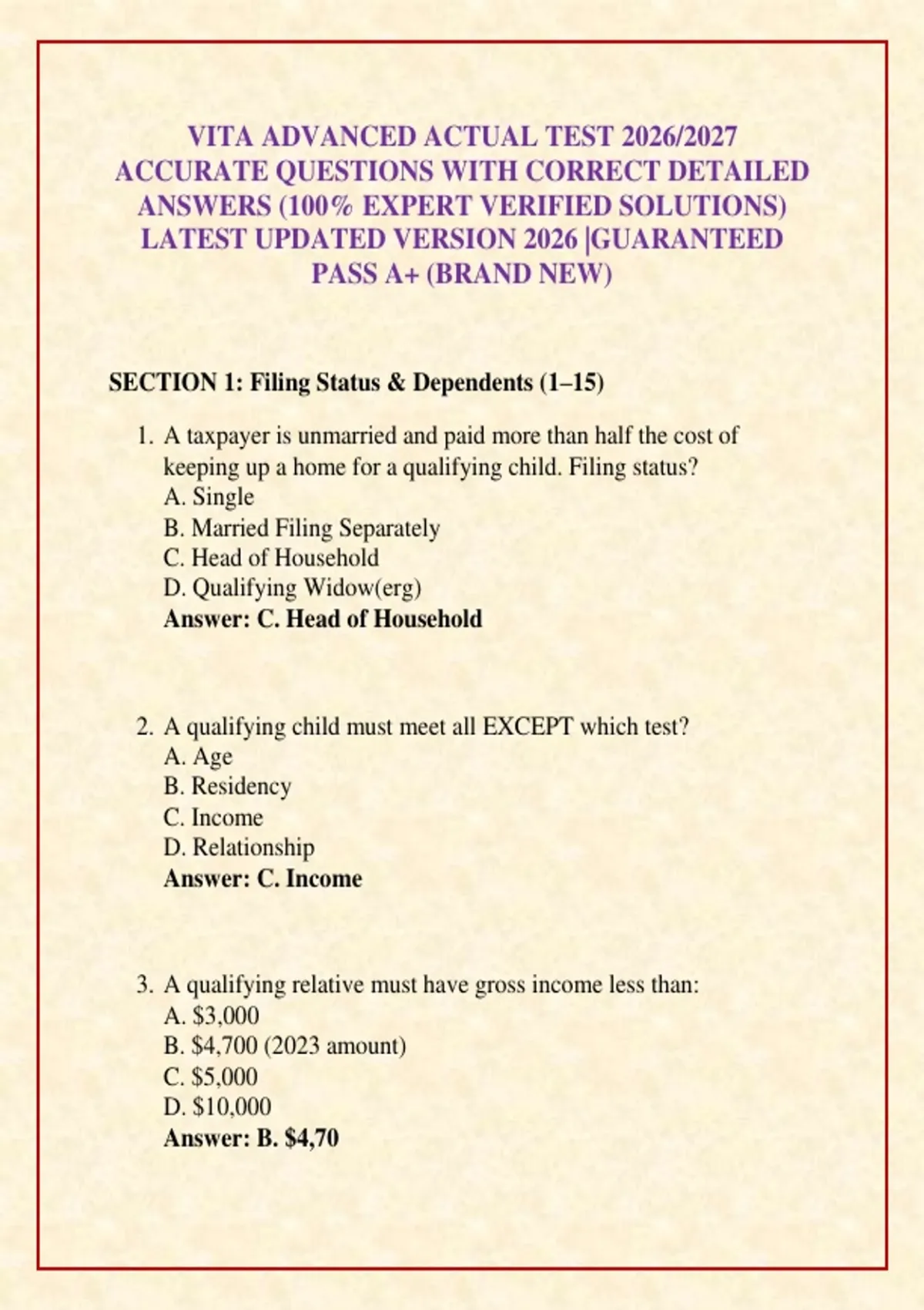 VITA ADVANCED ACTUAL TEST 2026/2027 ACCURATE QUESTIONS WITH CORRECT DETAILED ANSWERS (100% EXPERT VERIFIED SOLUTIONS) LATEST UPDATED VERSION 2026 |GUARANTEED PASS A+ (BRAND NEW)