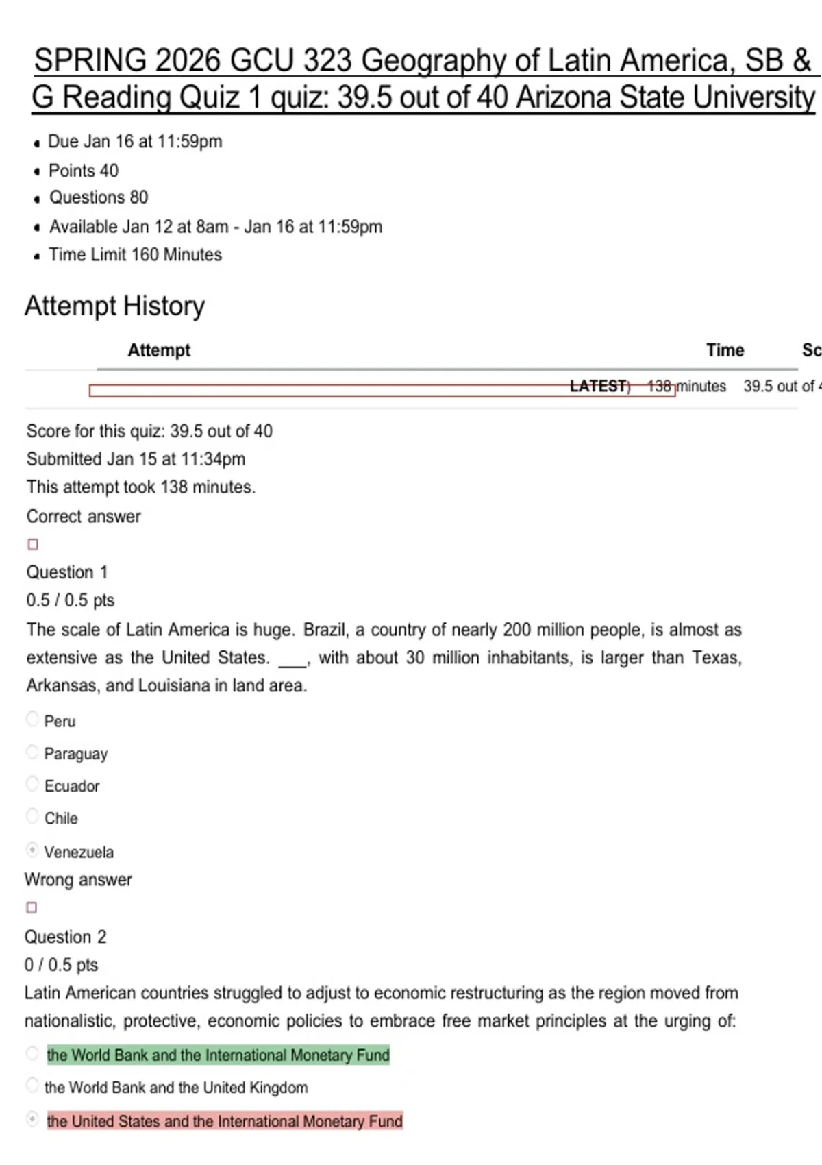 G Reading Quiz 1 quiz: 39.5 out of 40 Arizona State University