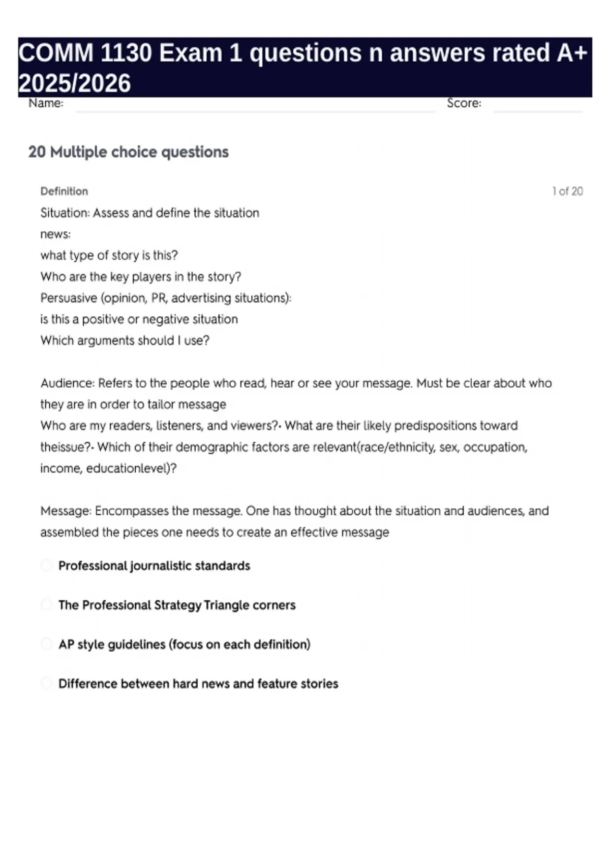 COMM 1130 Exam 1 questions n answers rated A+ 2025/2026