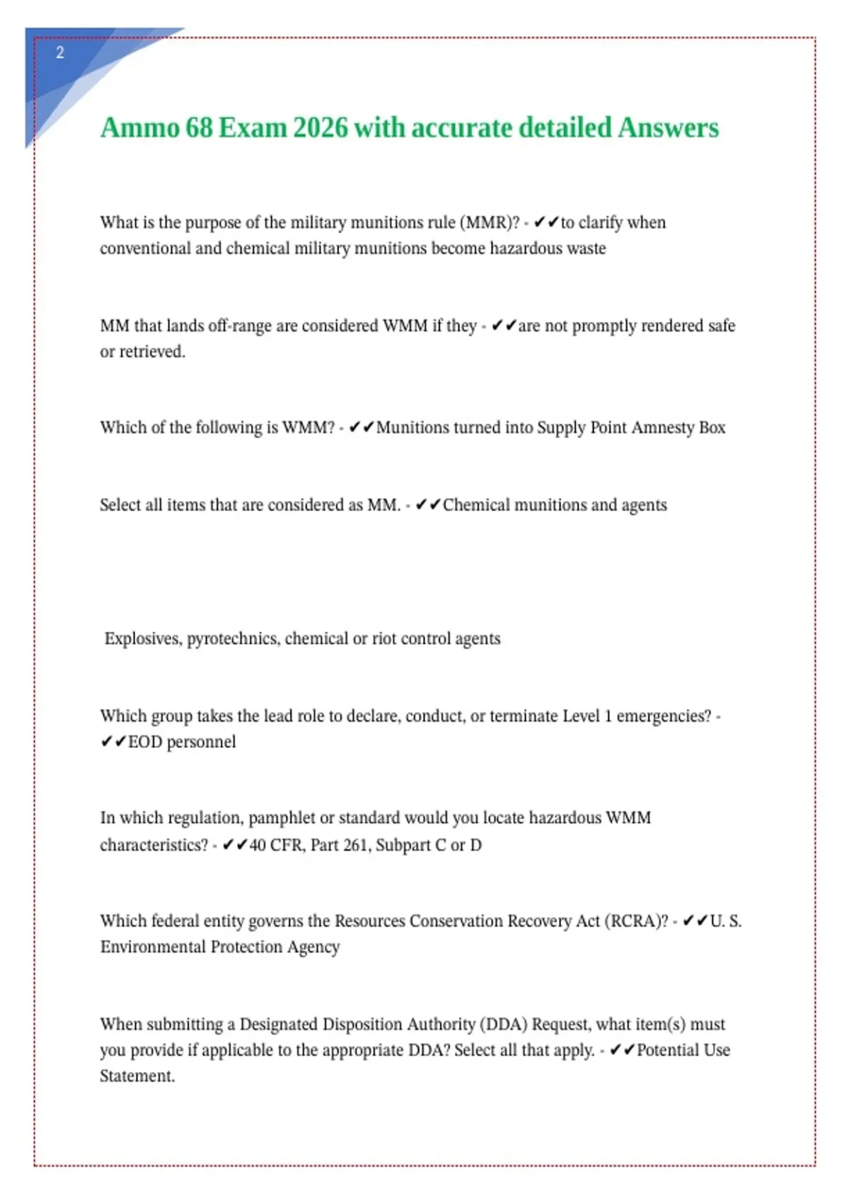 Ammo 68 Exam 2026 with accurate detailed Answers