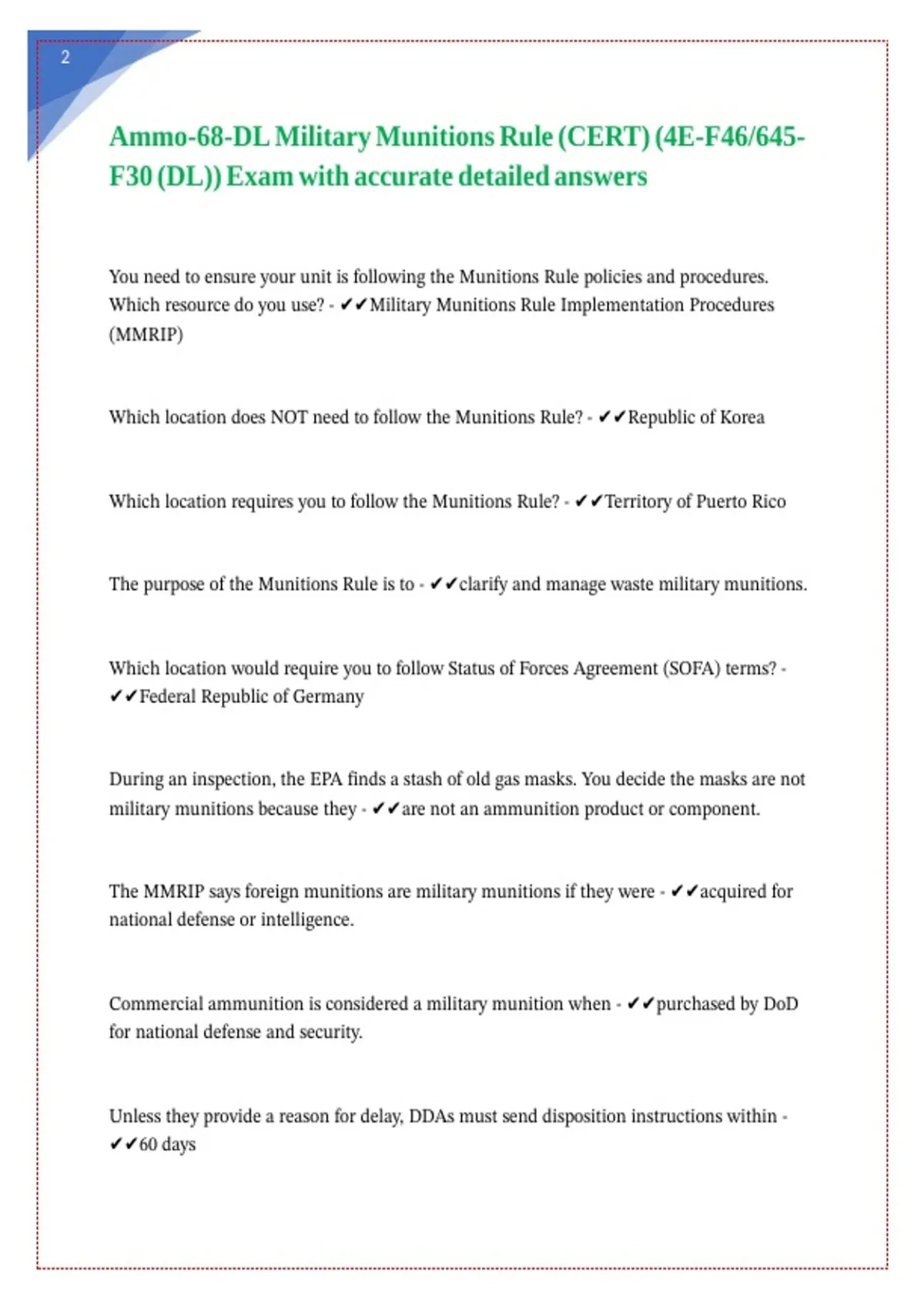 Ammo-68-DL Military Munitions Rule (CERT) (4E-F46/645- || || || || ||