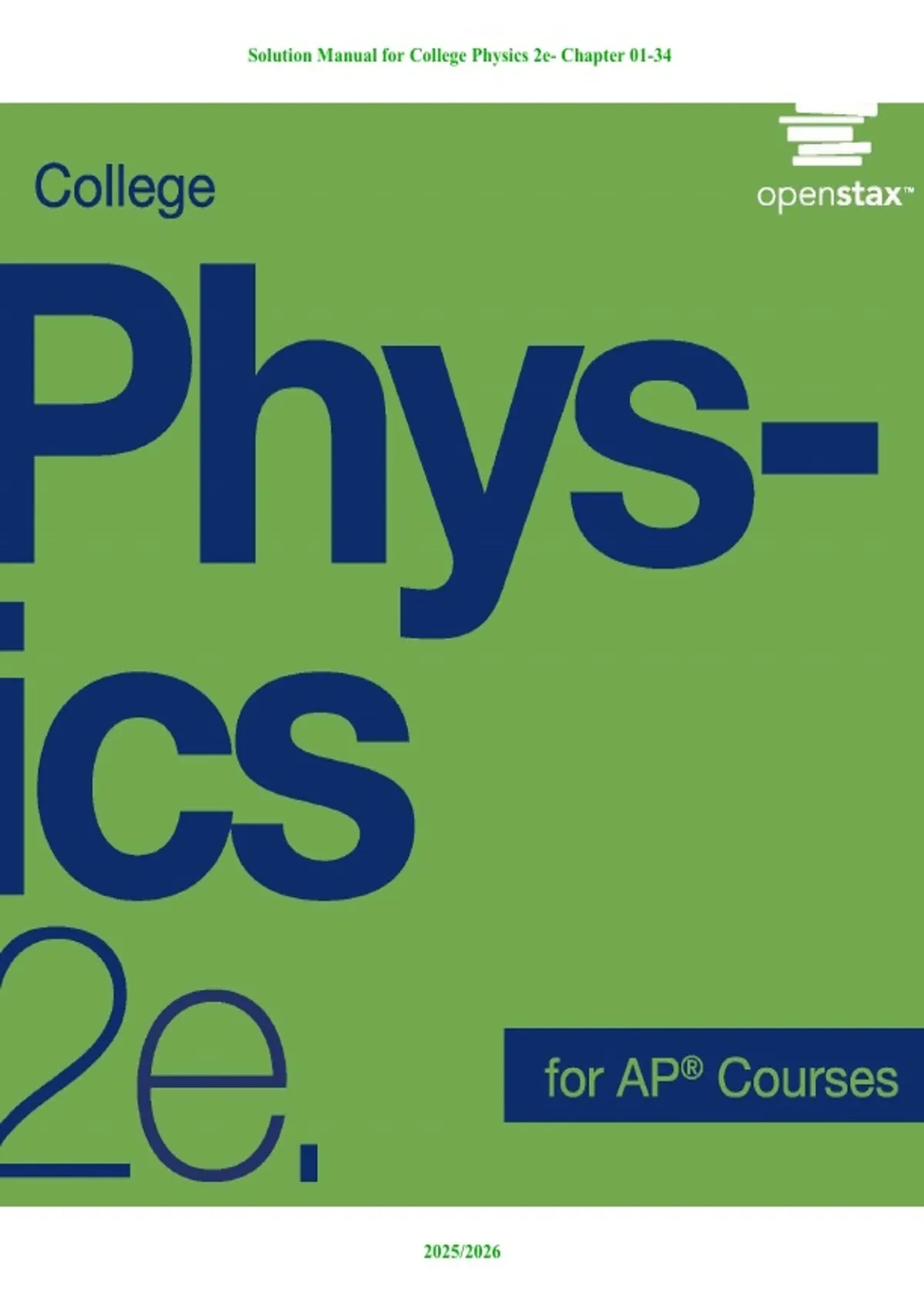 Physics: AP® Edition 2e Instructor Solutions Manual
