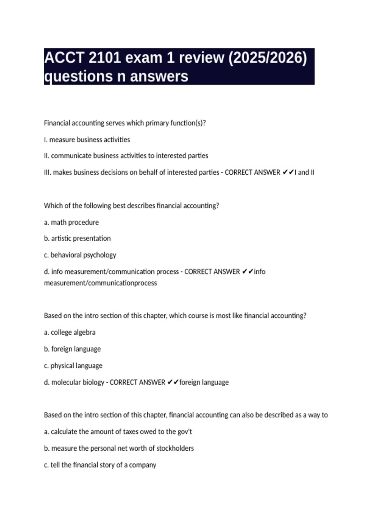 ACCT 2101 exam 1 review (2025/2026) questions n answers