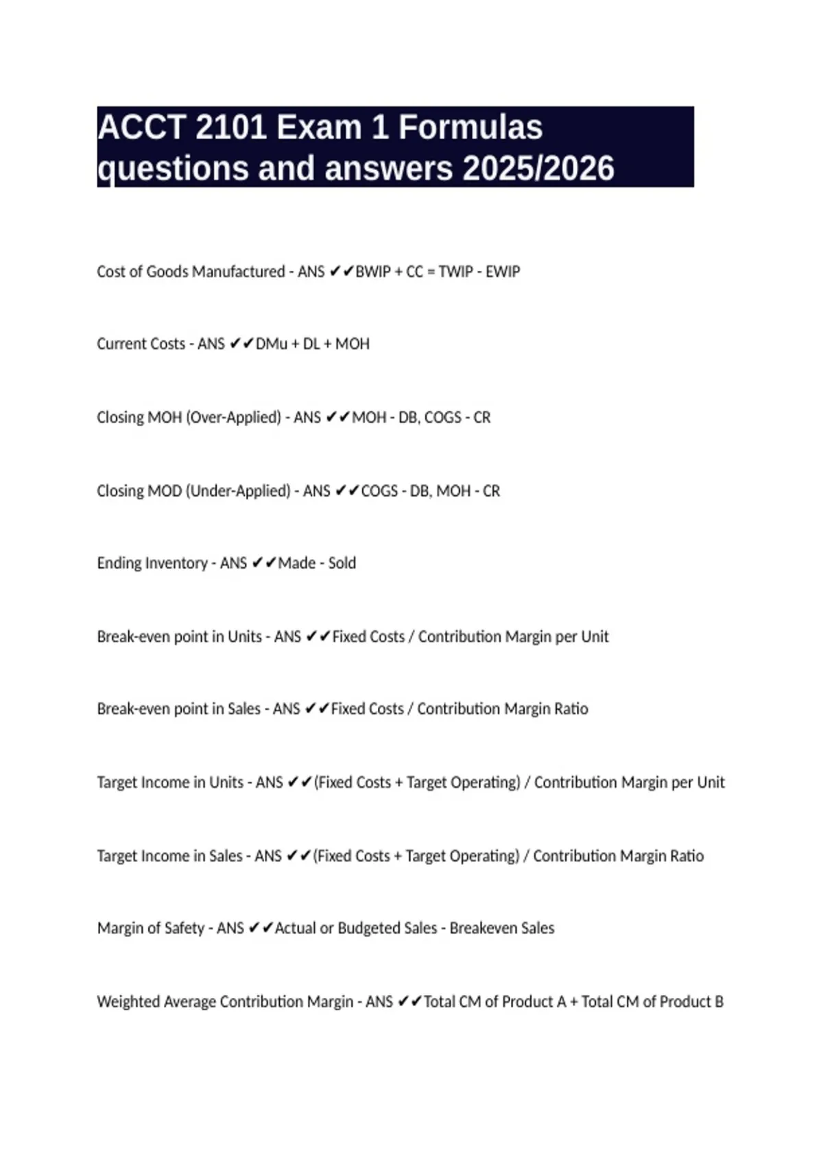 Break-even point in Units - ANS ✔✔Fixed Costs / Contribution Margin per Unit