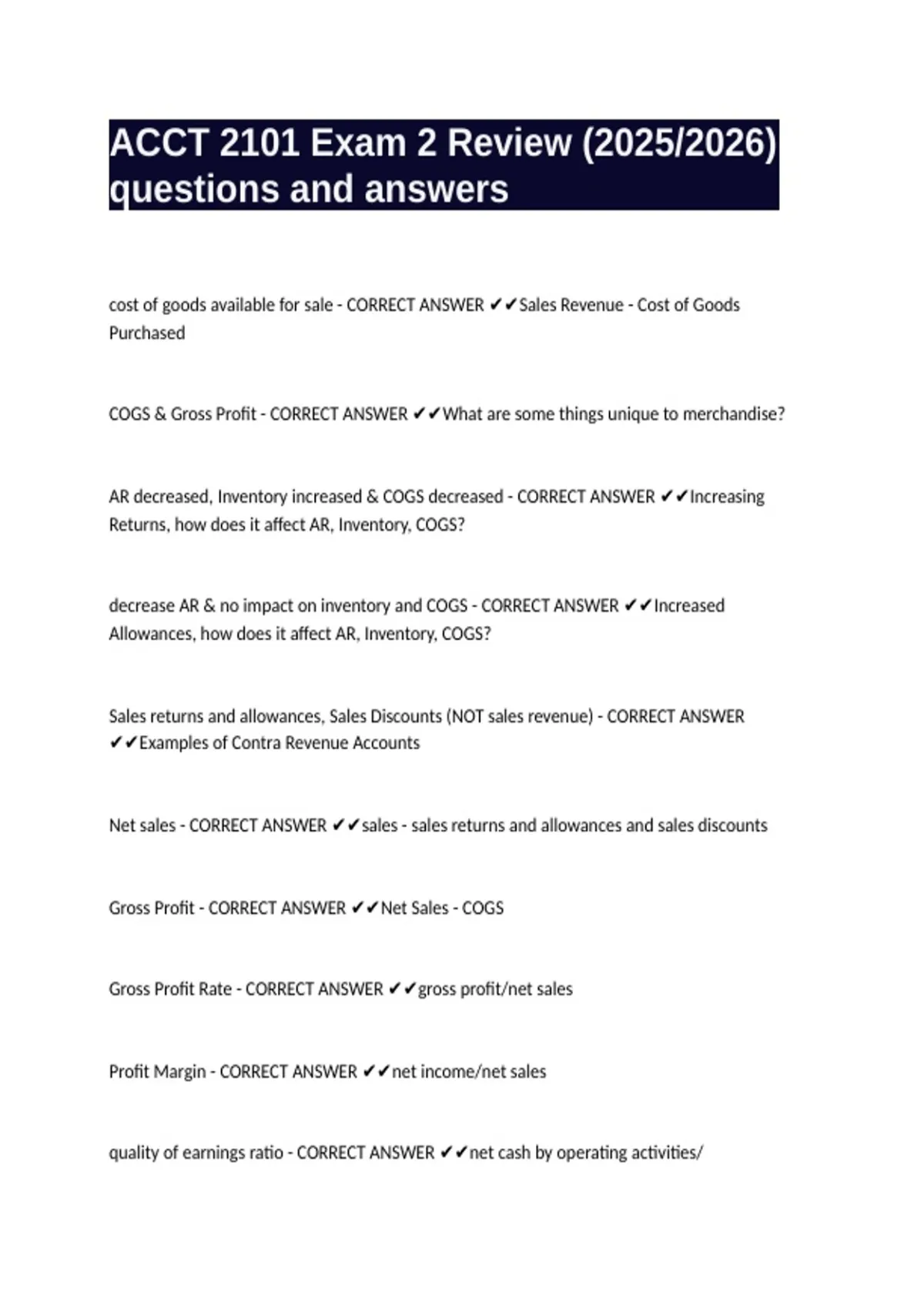 cost of goods available for sale - CORRECT ANSWER ✔✔Sales Revenue - Cost of Goods