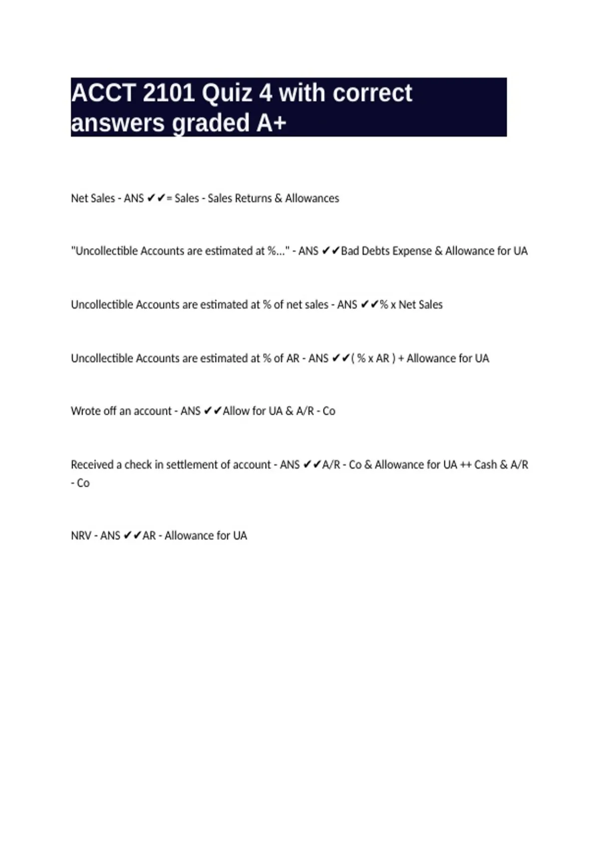 ACCT 2101 Quiz 4 with correct answers graded A+