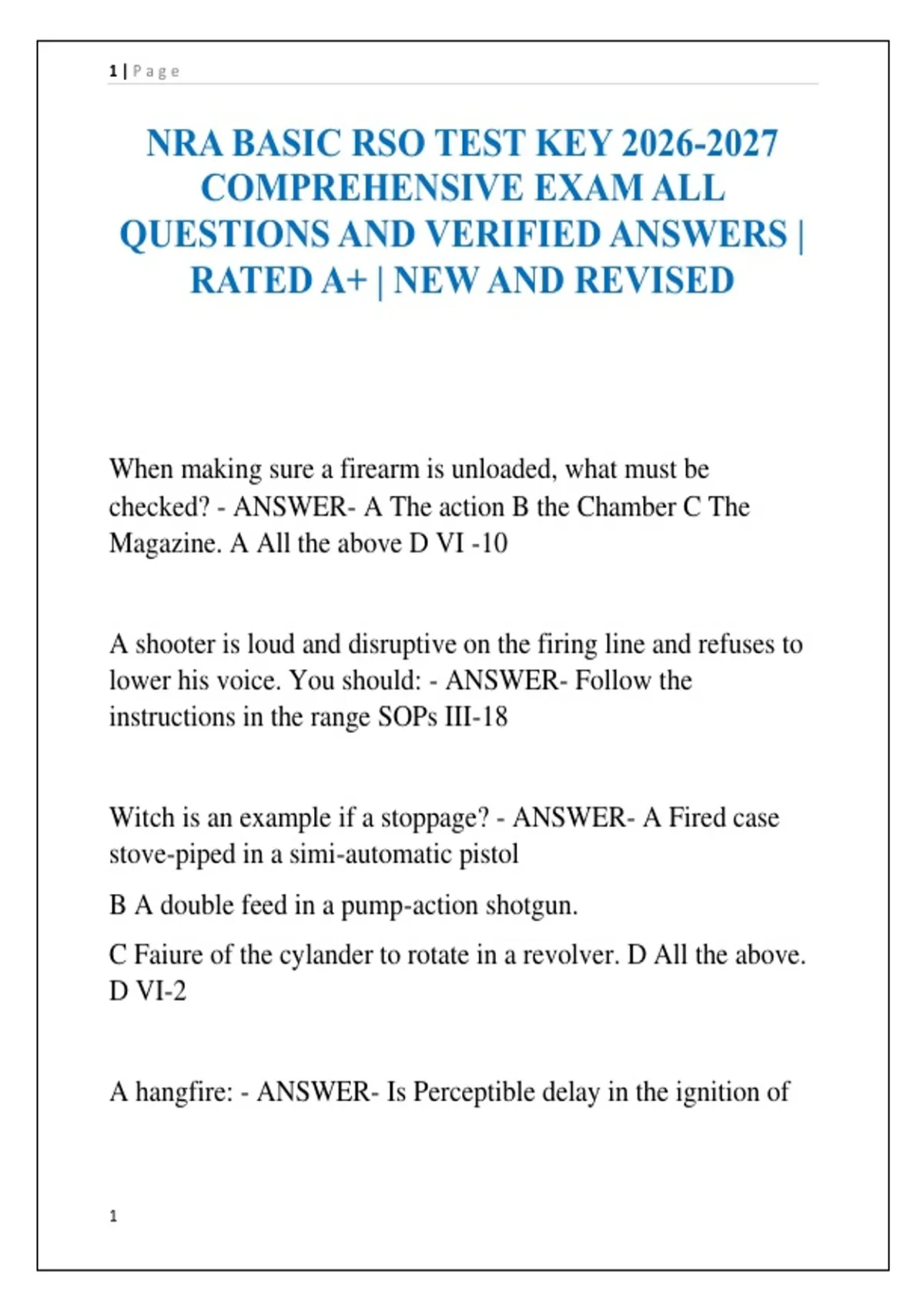 NRA BASIC RSO TEST KEY COMPREHENSIVE EXAM ALL QUESTIONS AND VERIFIED ANSWERS | RATED A+ | NEW AND REVISED