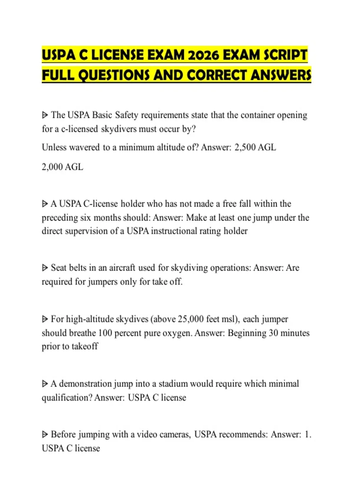 USPA C LICENSE EXAM 2026 EXAM SCRIPT FULL QUESTIONS AND CORRECT ANSWERS