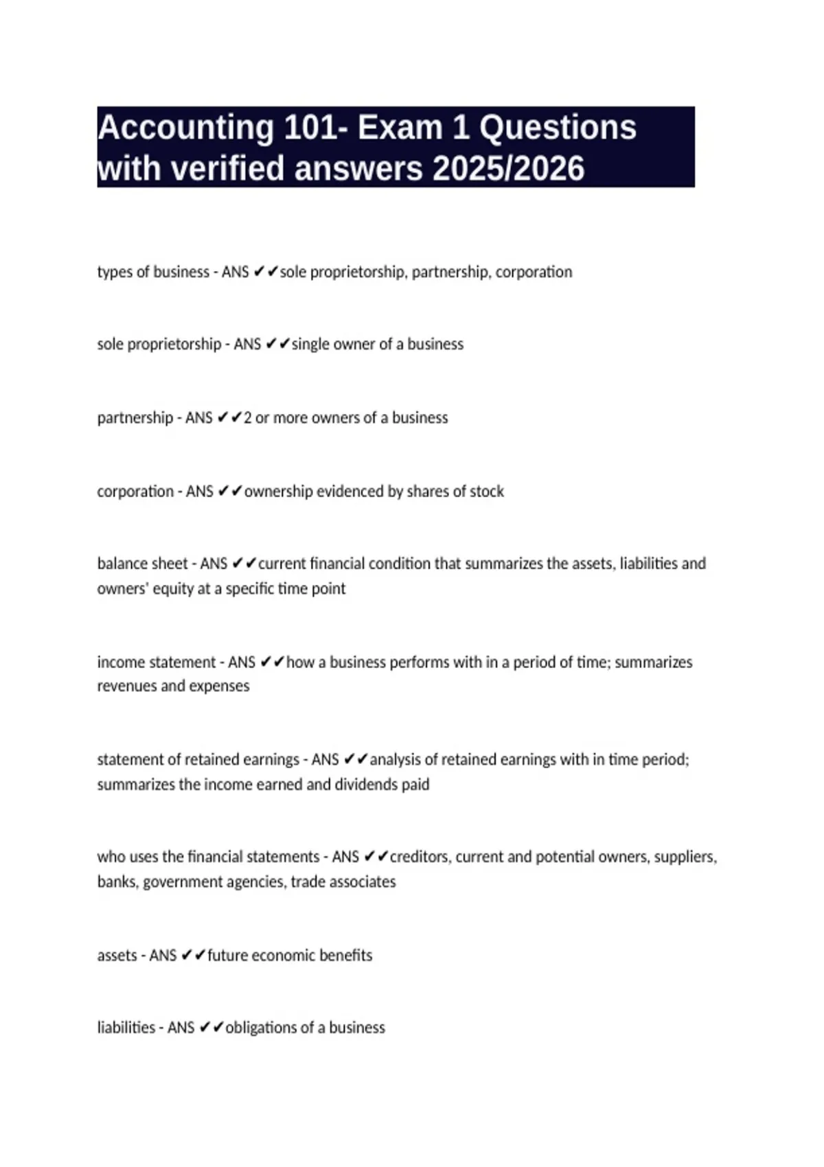 types of business - ANS ✔✔sole proprietorship, partnership, corporation
