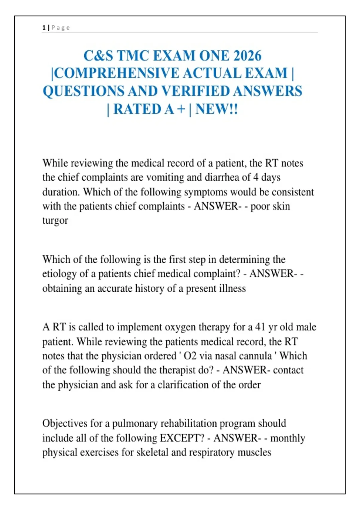 C&S TMC EXAM ONE 2026
