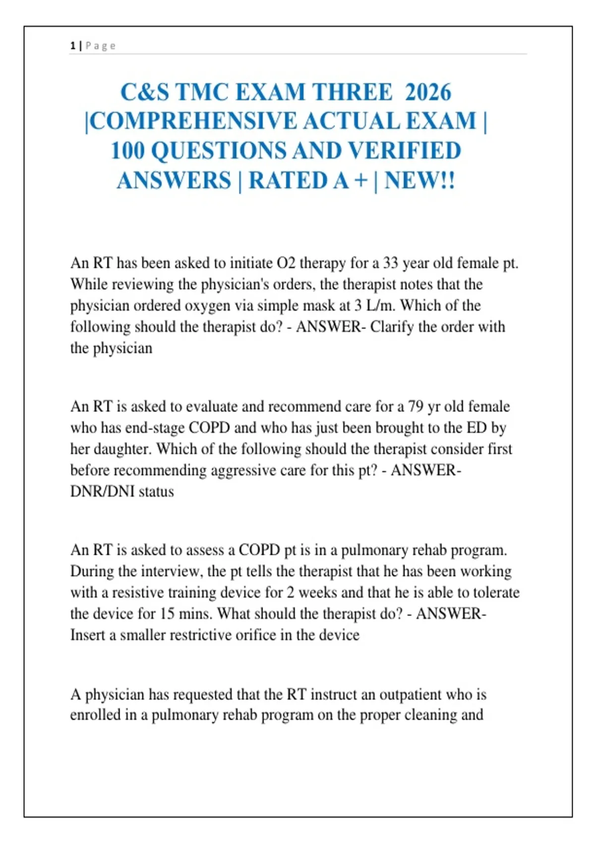 100 QUESTIONS AND VERIFIED
