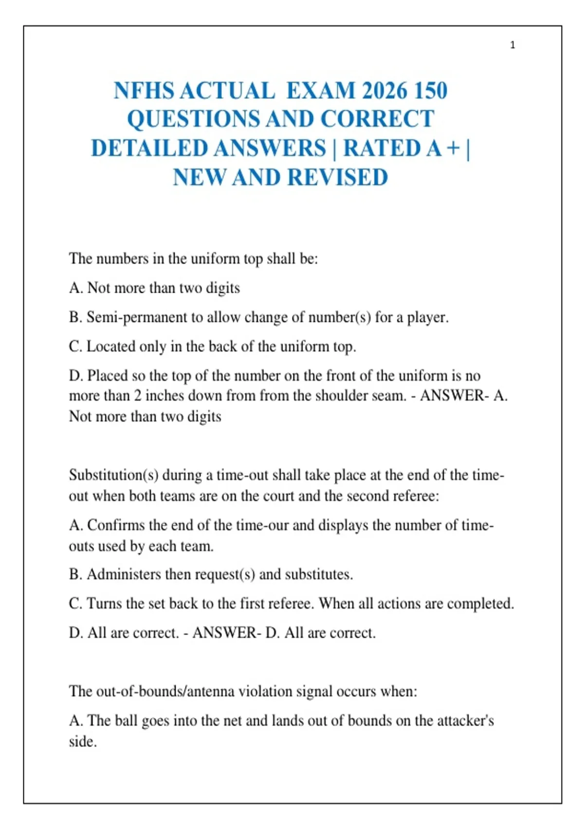 NFHS ACTUAL EXAM 2026 150 QUESTIONS AND CORRECT DETAILED ANSWERS | RATED A + | NEW AND REVISED