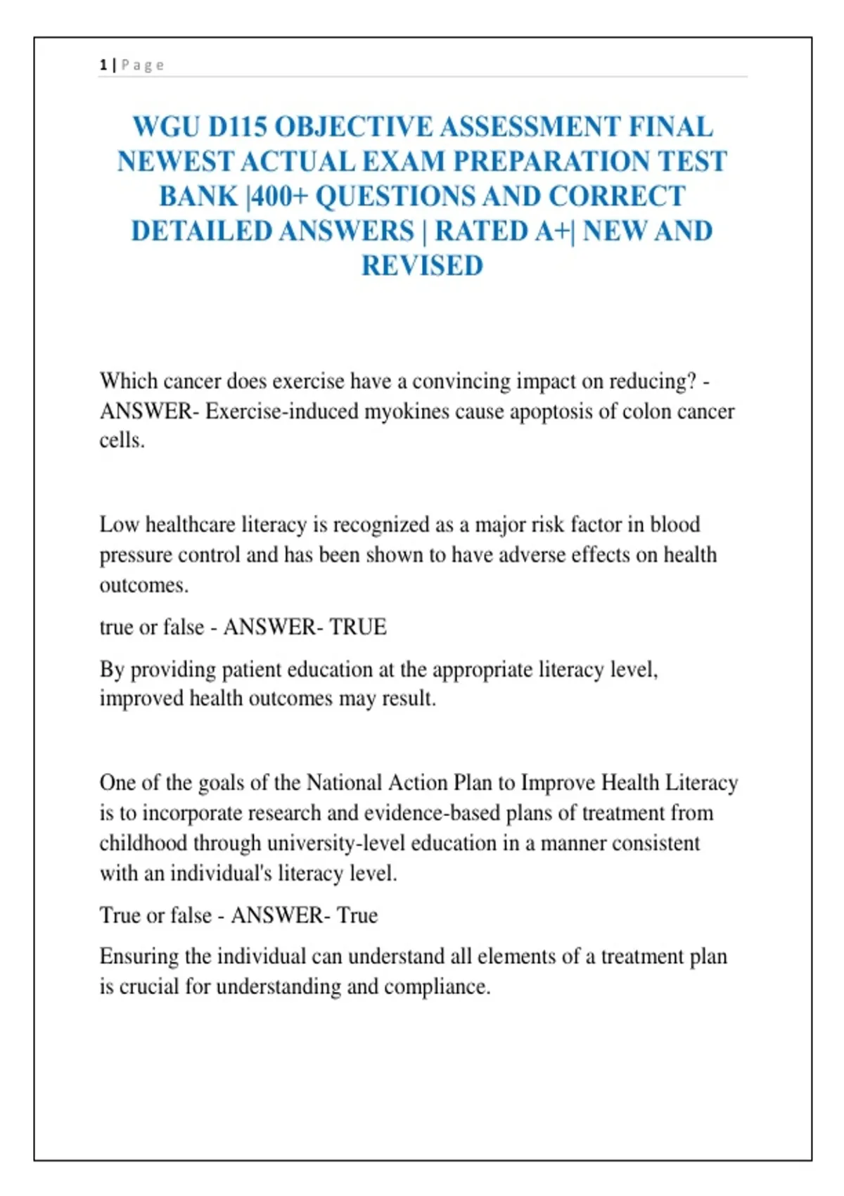 WGU D115 OBJECTIVE ASSESSMENT FINAL
