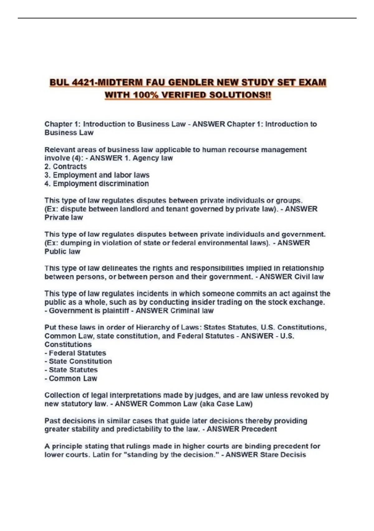 BUL 4421-MIDTERM FAU GENDLER NEW STUDY SET EXAM WITH 100% VERIFIED SOLUTIONS!!...