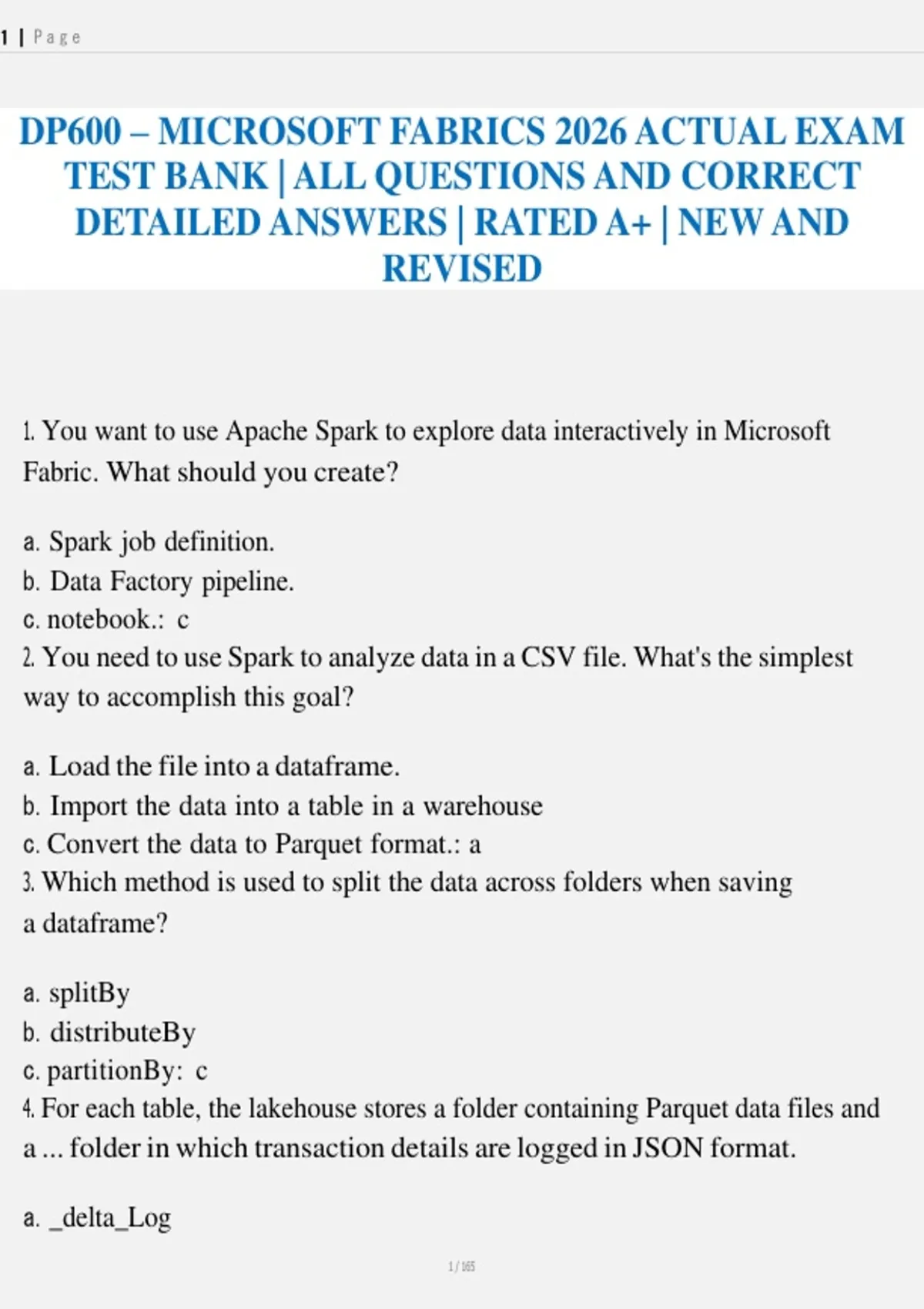 1. You want to use Apache Spark to explore data interactively in Microsoft