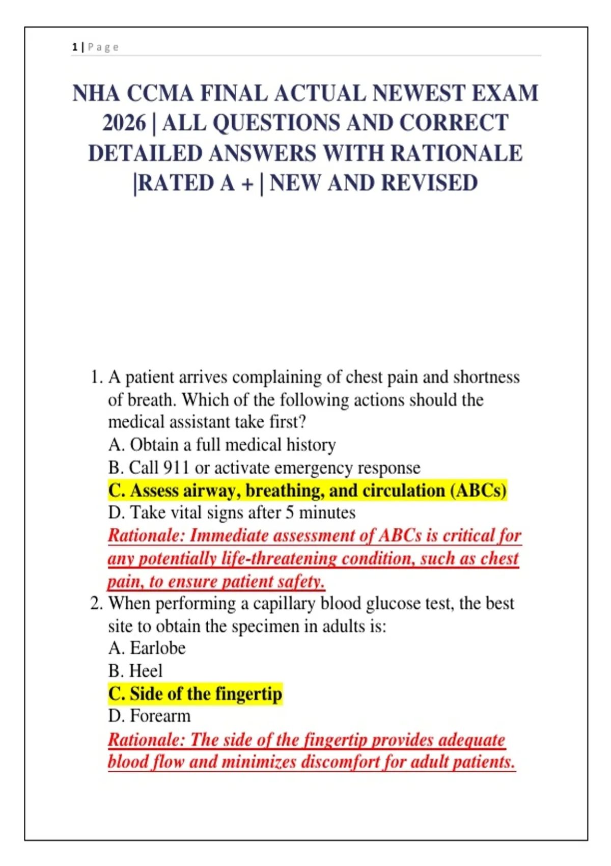 NHA CCMA FINAL ACTUAL NEWEST EXAM