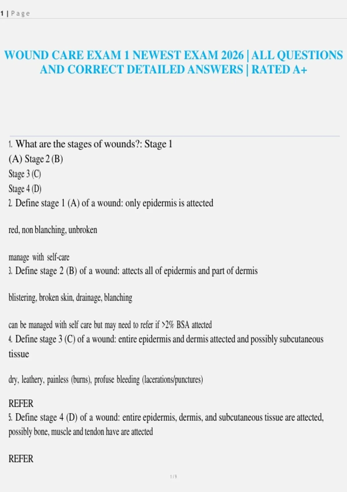 WOUND CARE EXAM 1 NEWEST EXAM 2026 | ALL QUESTIONS