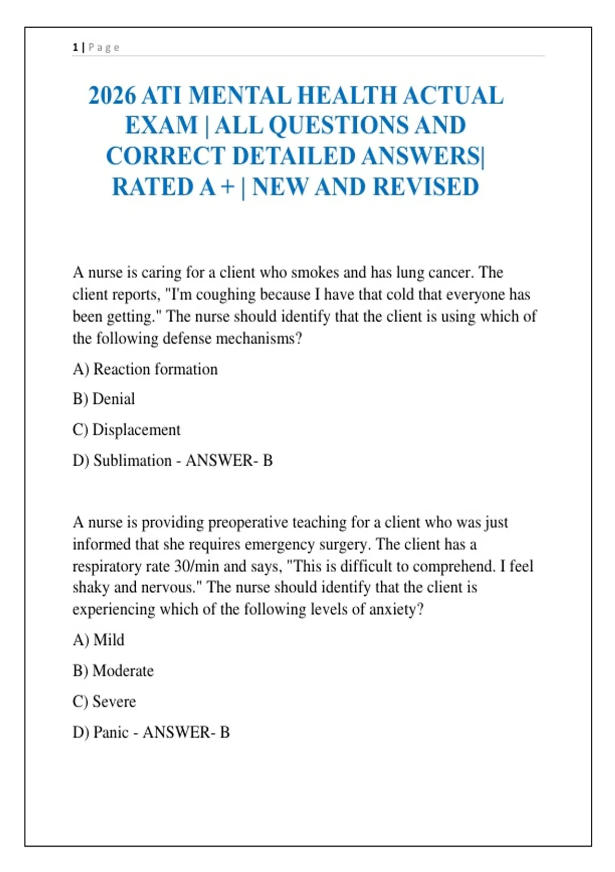 2026 ATI MENTAL HEALTH ACTUAL EXAM | ALL QUESTIONS AND CORRECT DETAILED ANSWERS| RATED A + | NEW AND REVISED