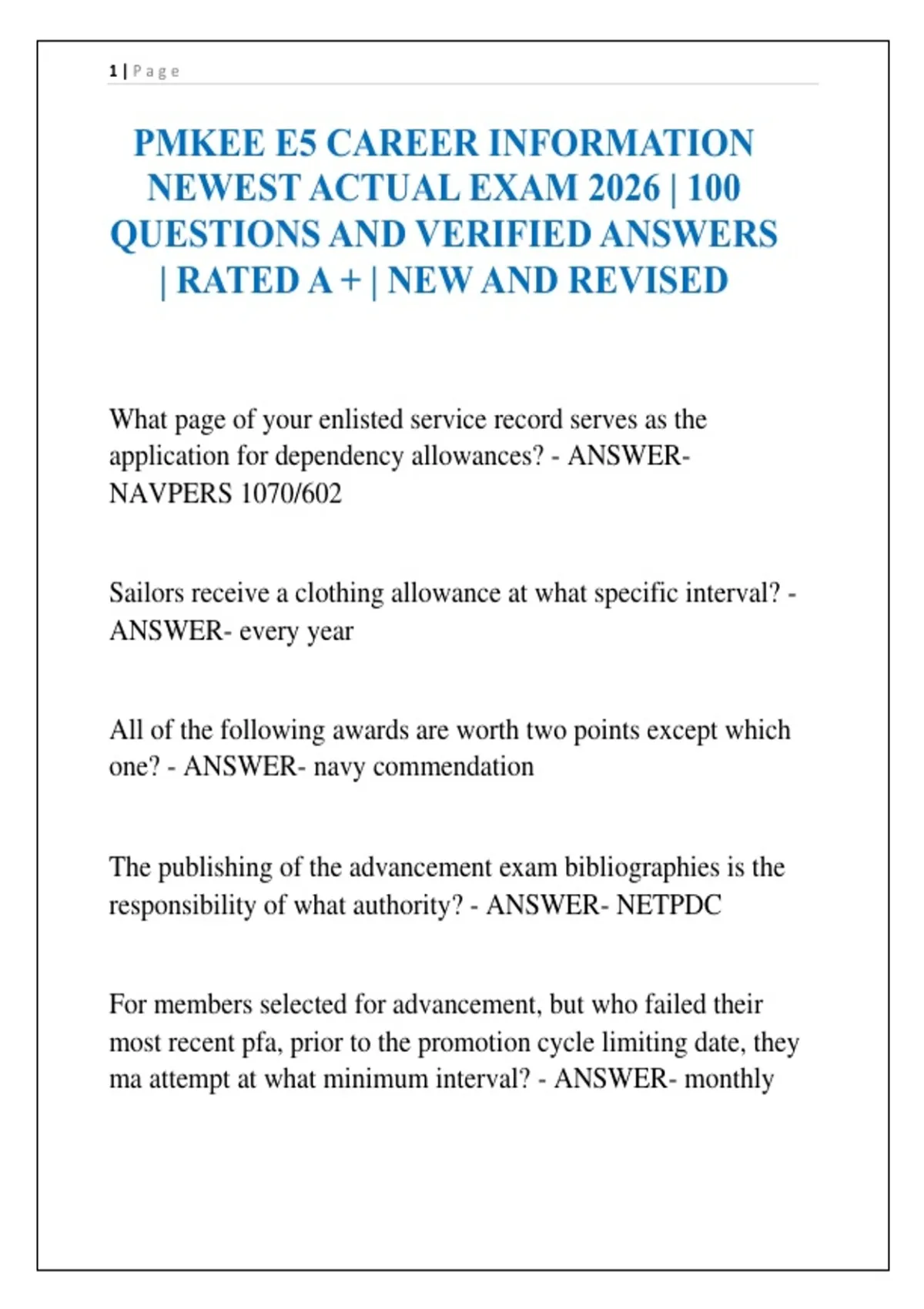 PMKEE E5 CAREER INFORMATION NEWEST ACTUAL EXAM 2026 | 100 QUESTIONS AND VERIFIED ANSWERS | RATED A + | NEW AND REVISED