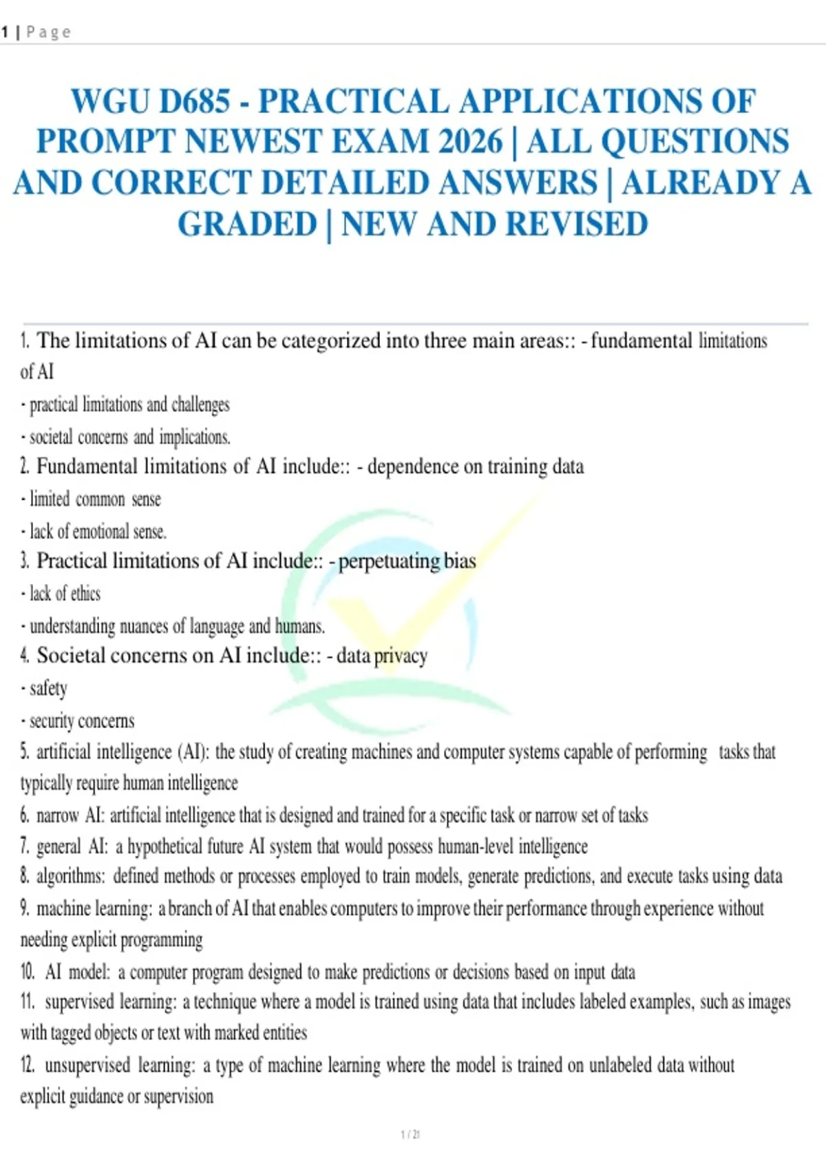 WGU D685 - PRACTICAL APPLICATIONS OF PROMPT NEWEST EXAM 2026 | ALL QUESTIONS AND CORRECT DETAILED ANSWERS | ALREADY A GRADED | NEW AND REVISED