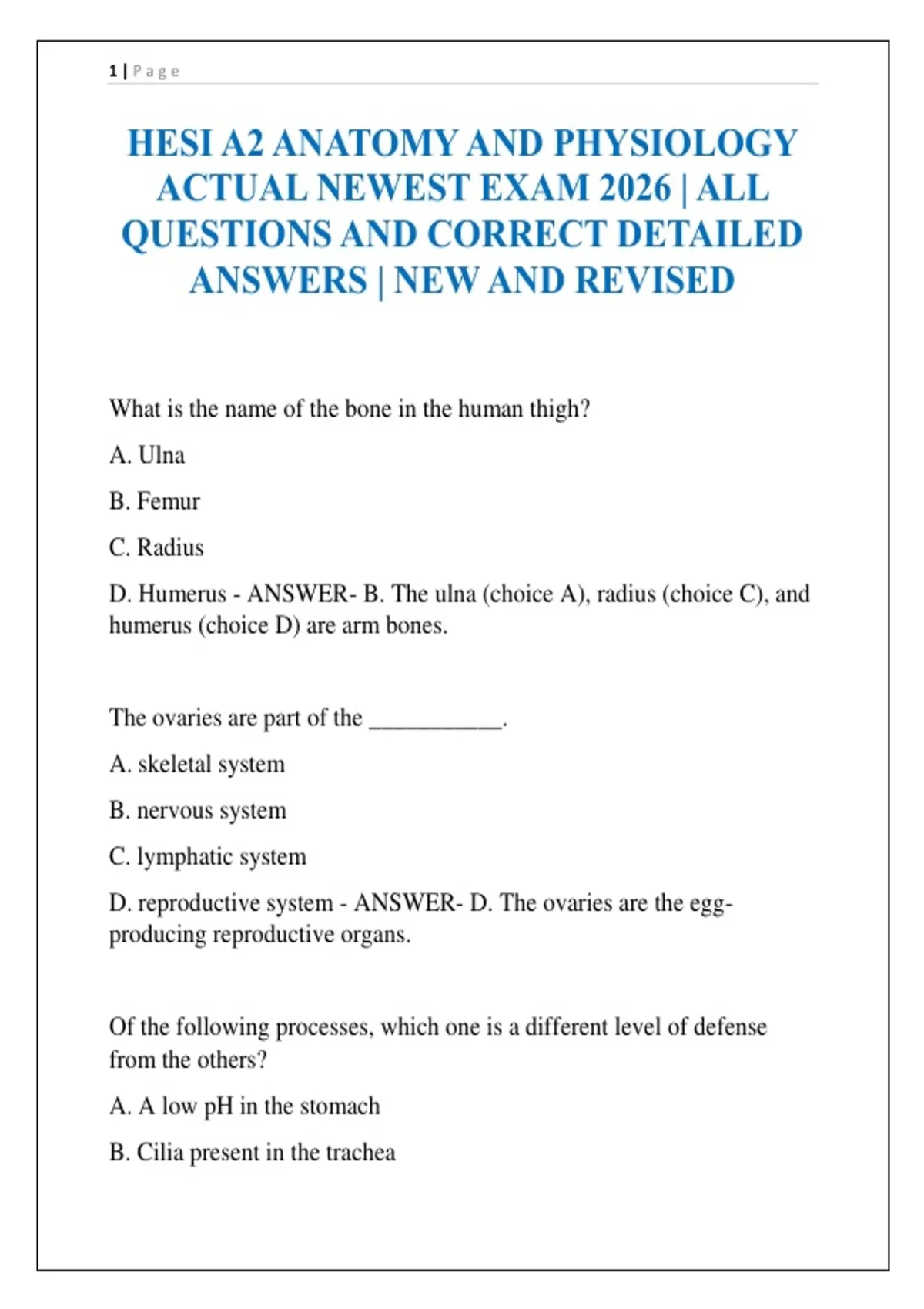 HESI A2 ANATOMY AND PHYSIOLOGY