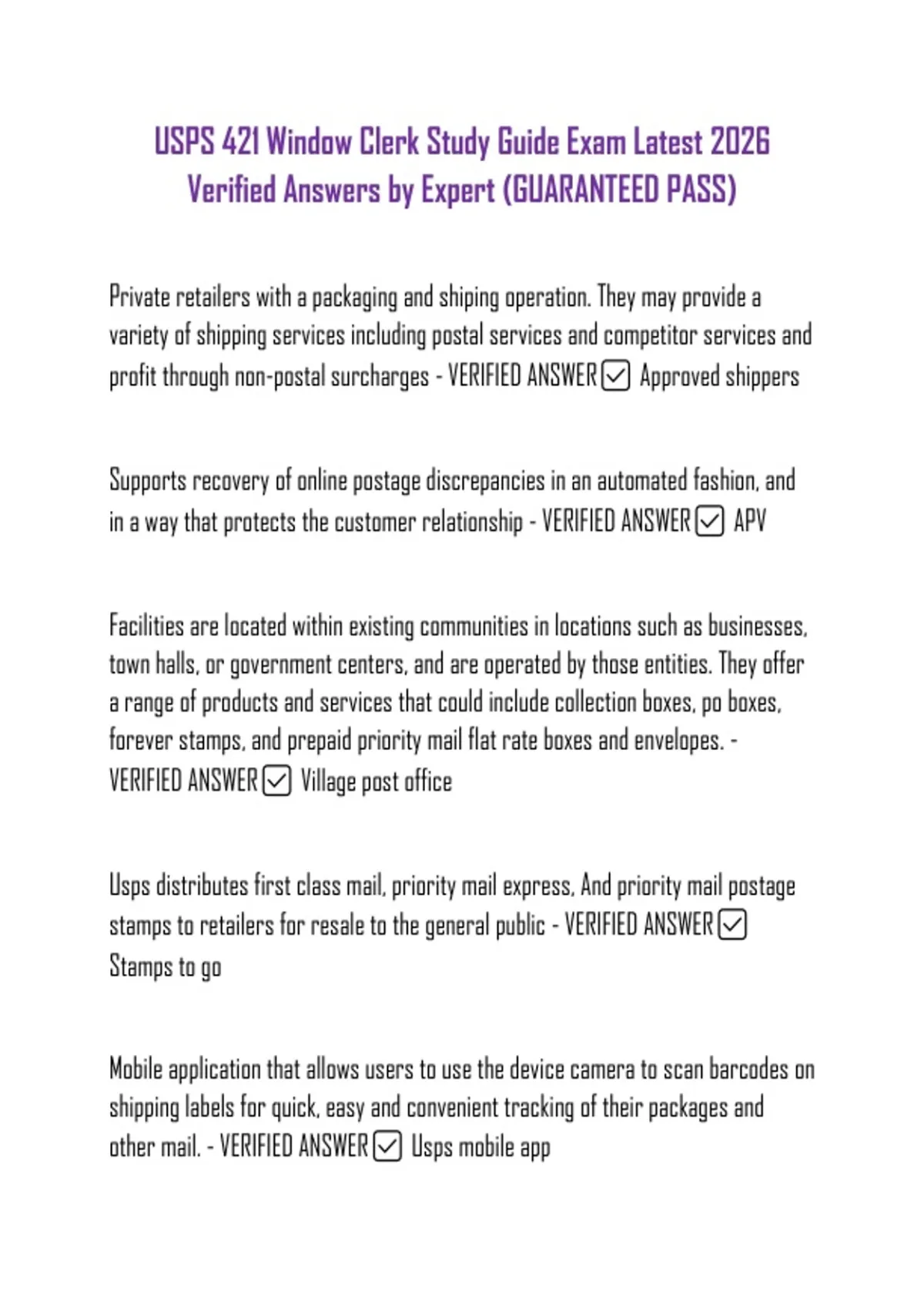 Verified Answers by Expert (GUARANTEED PASS)