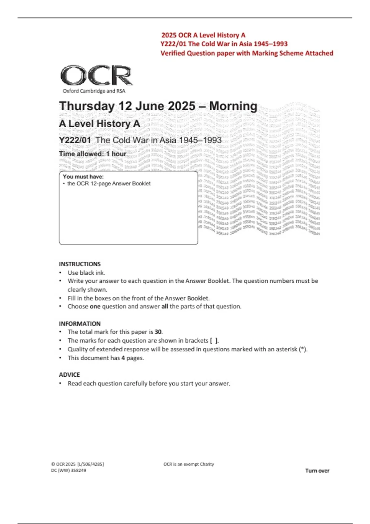 2025 OCR A Level History A Y222-01 The Cold War in Asia 1945–1993