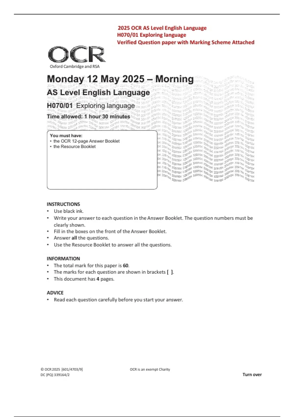 2025 OCR AS Level English Language H07001 Exploring language Verified