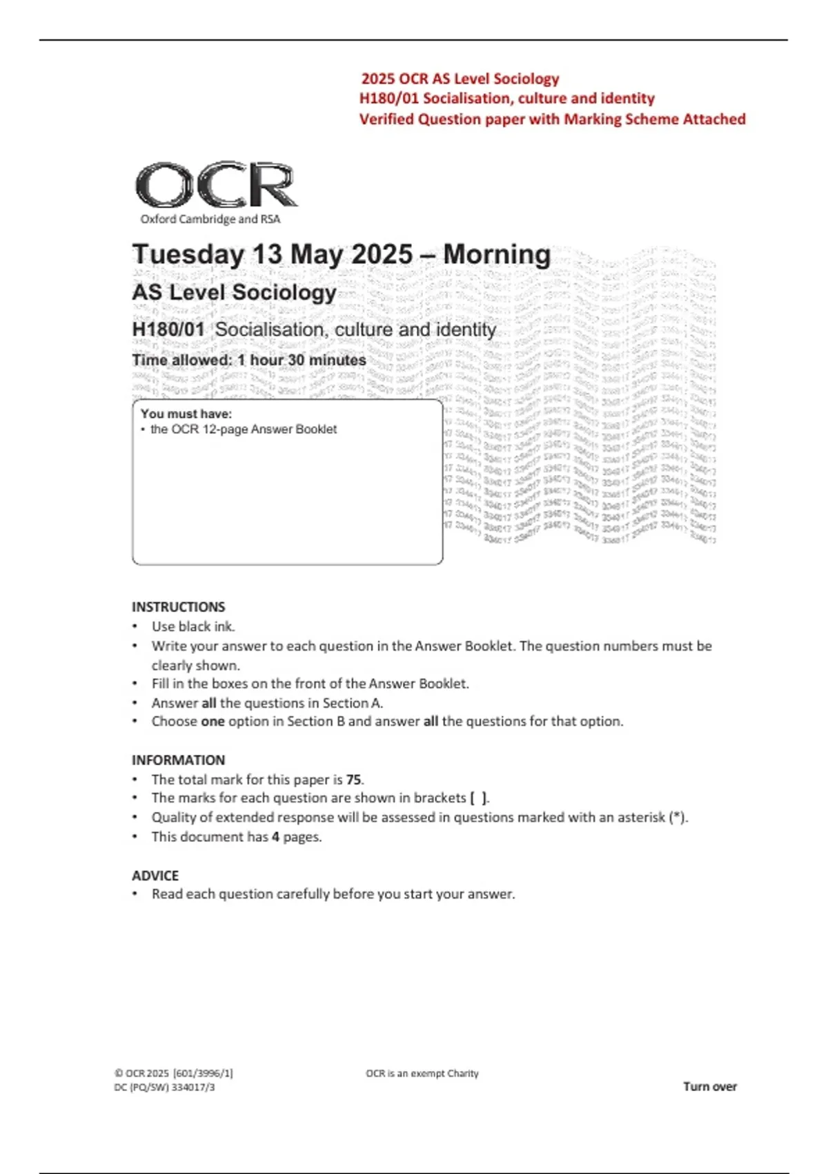 • the OCR 12-page Answer Booklet