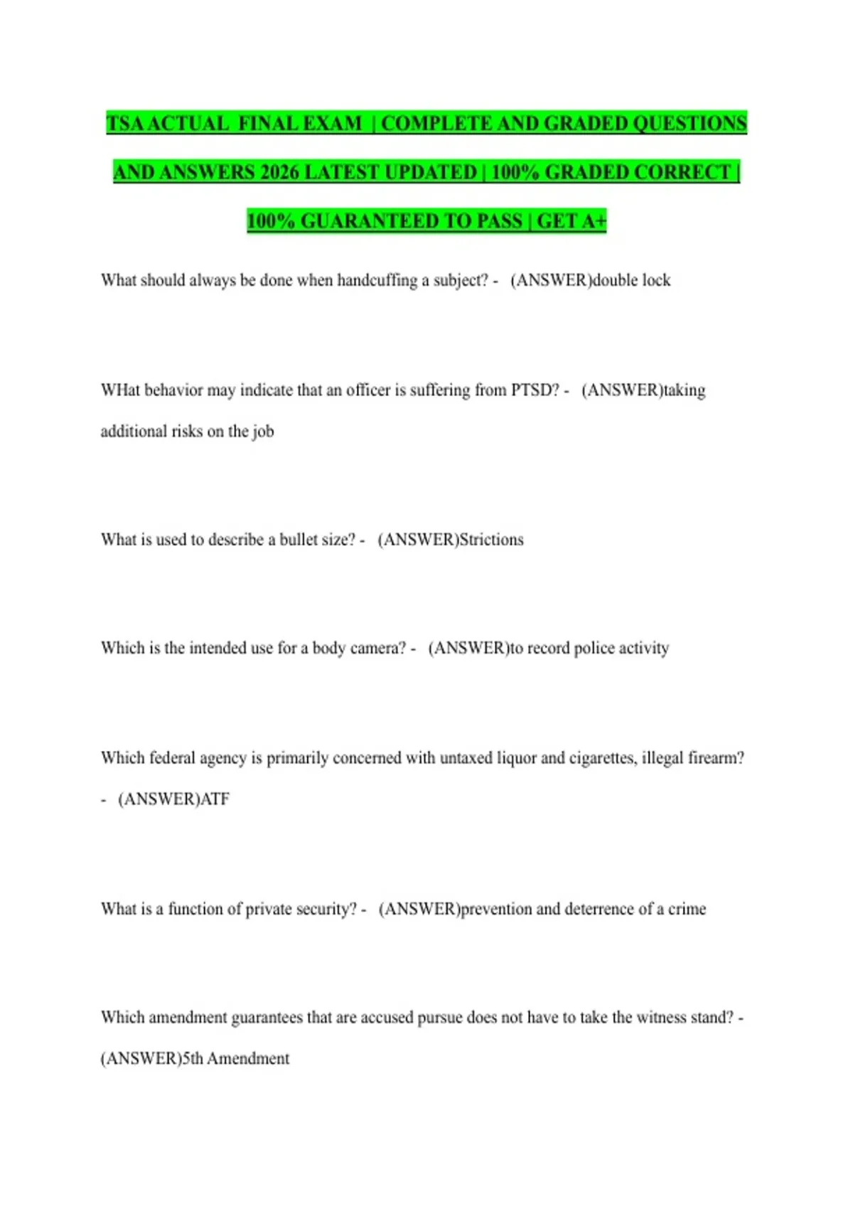 AND ANSWERS 2026 LATEST UPDATED | 100% GRADED CORRECT |