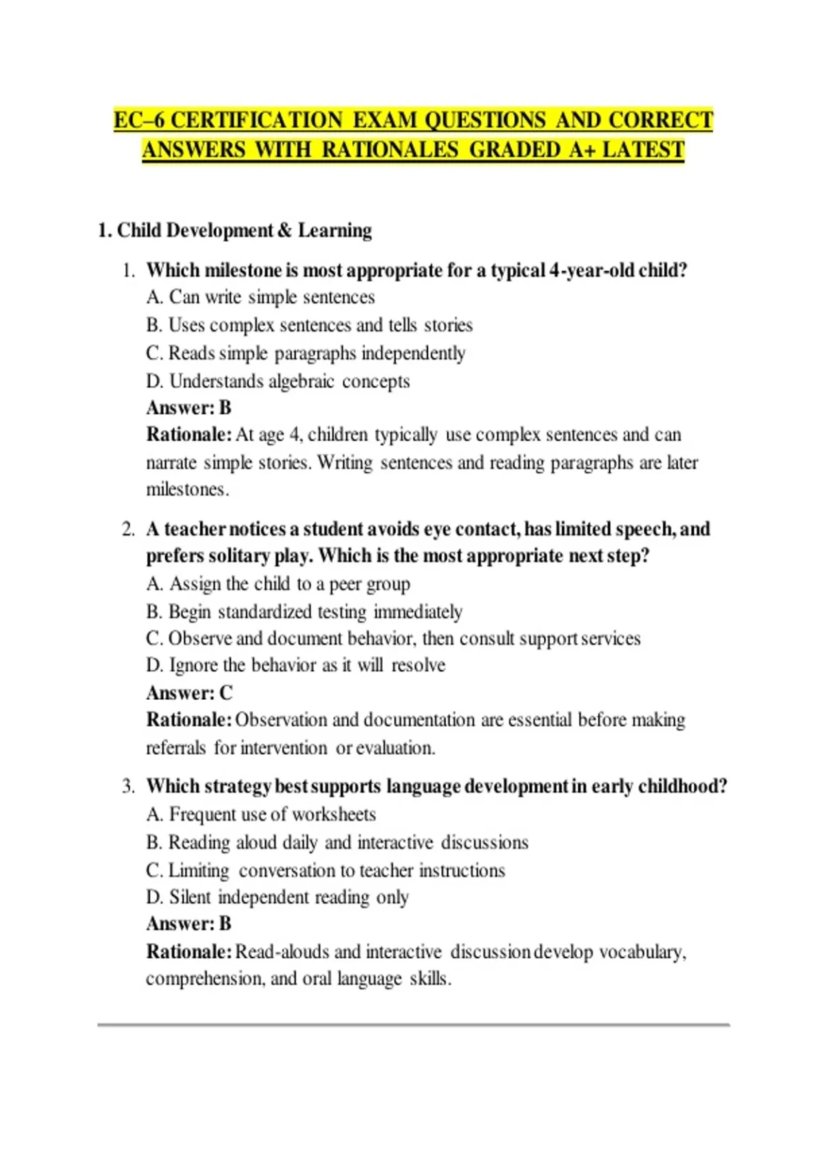ANSWERS WITH RATIONALES GRADED A+ LATEST