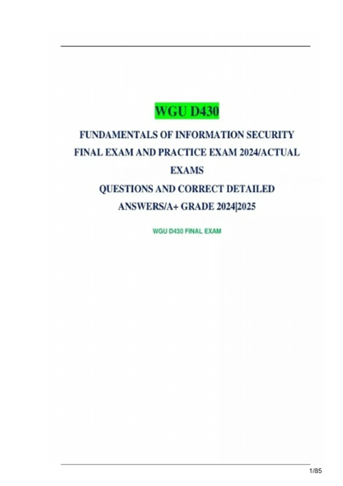 GU D430 FINAL EXAM