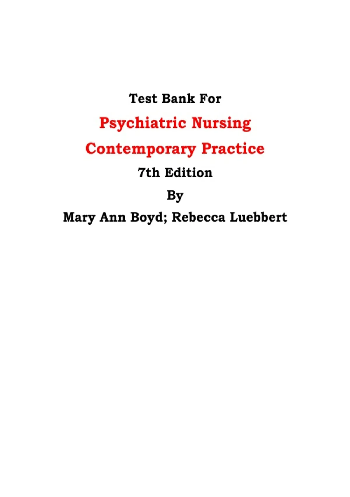 Test Bank - Psychiatric Nursing: Contemporary Practice (7th Edition by Boyd) 1