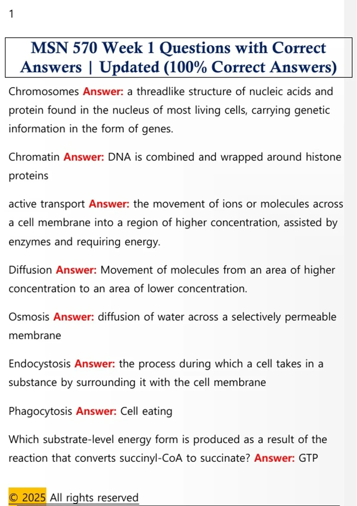 MSN 570 Week 1 Questions with Correct
