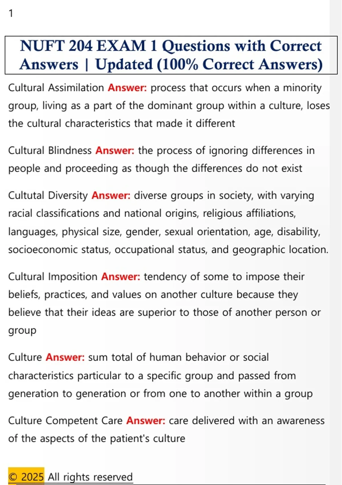 NUFT 204 EXAM 1 Questions with Correct Answers | Updated (100% Correct Answers)
