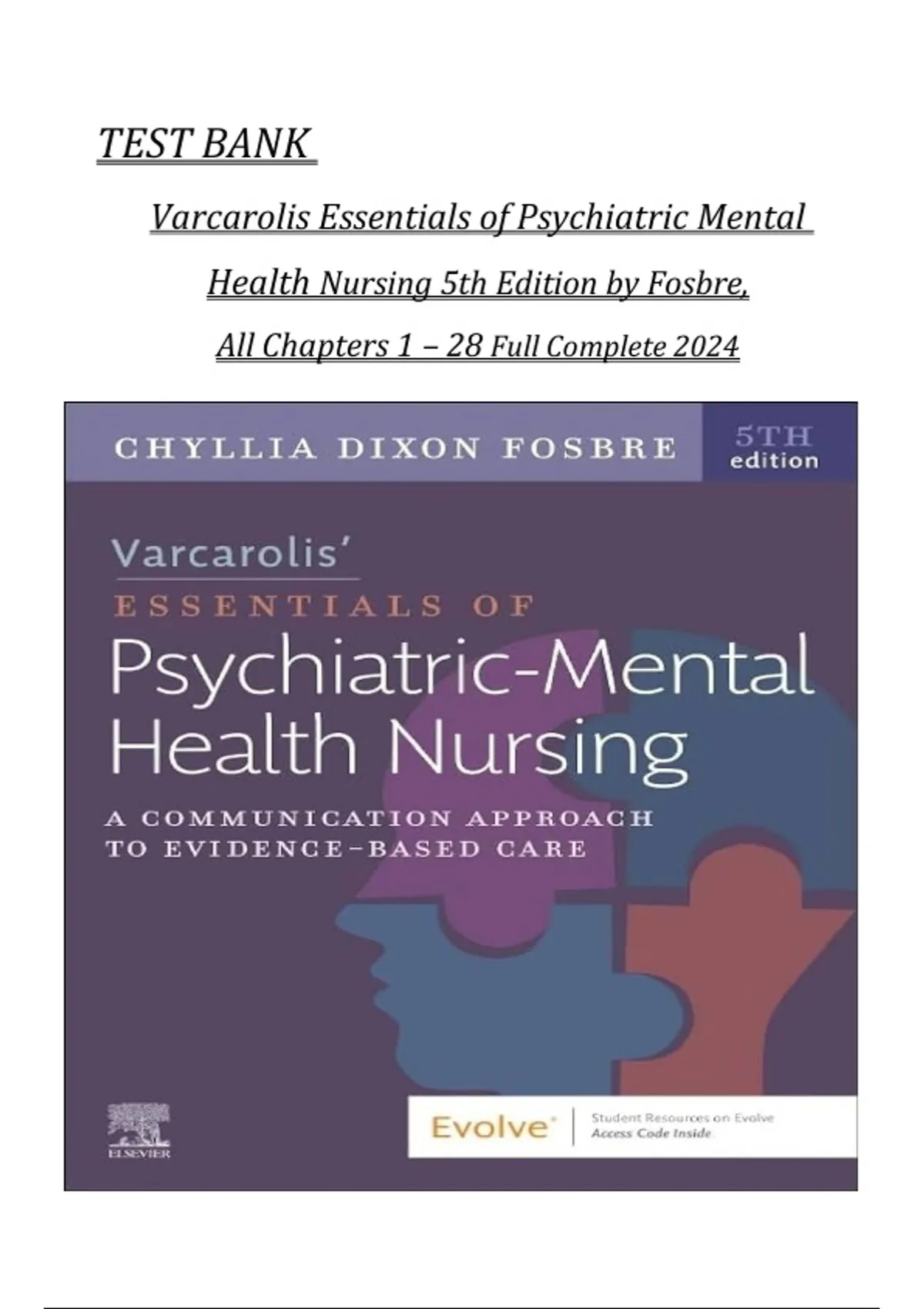 Prepare with the complete test bank for Essentials of Psychiatric Mental Health Nursing, 5th Edition by Varcarolis. This 2025–2026 resource includes verified questions and answers with detailed rationales, covering psychiatric assessment, mental health disorders, therapeutic communication, and evidence-based interventions, designed to help nursing students master psychiatric nursing concepts and confidently succeed in exams.