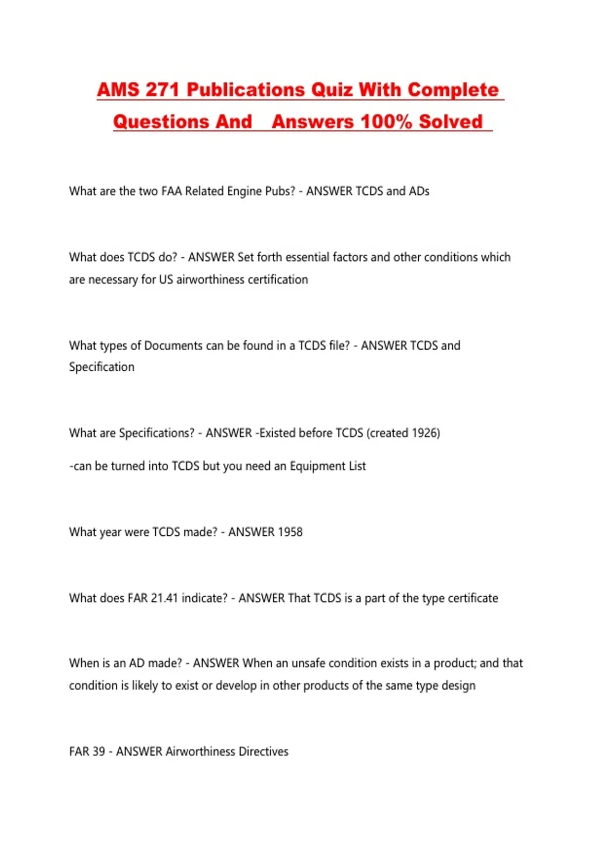 FAR 39 - ANSWER Airworthiness Directives