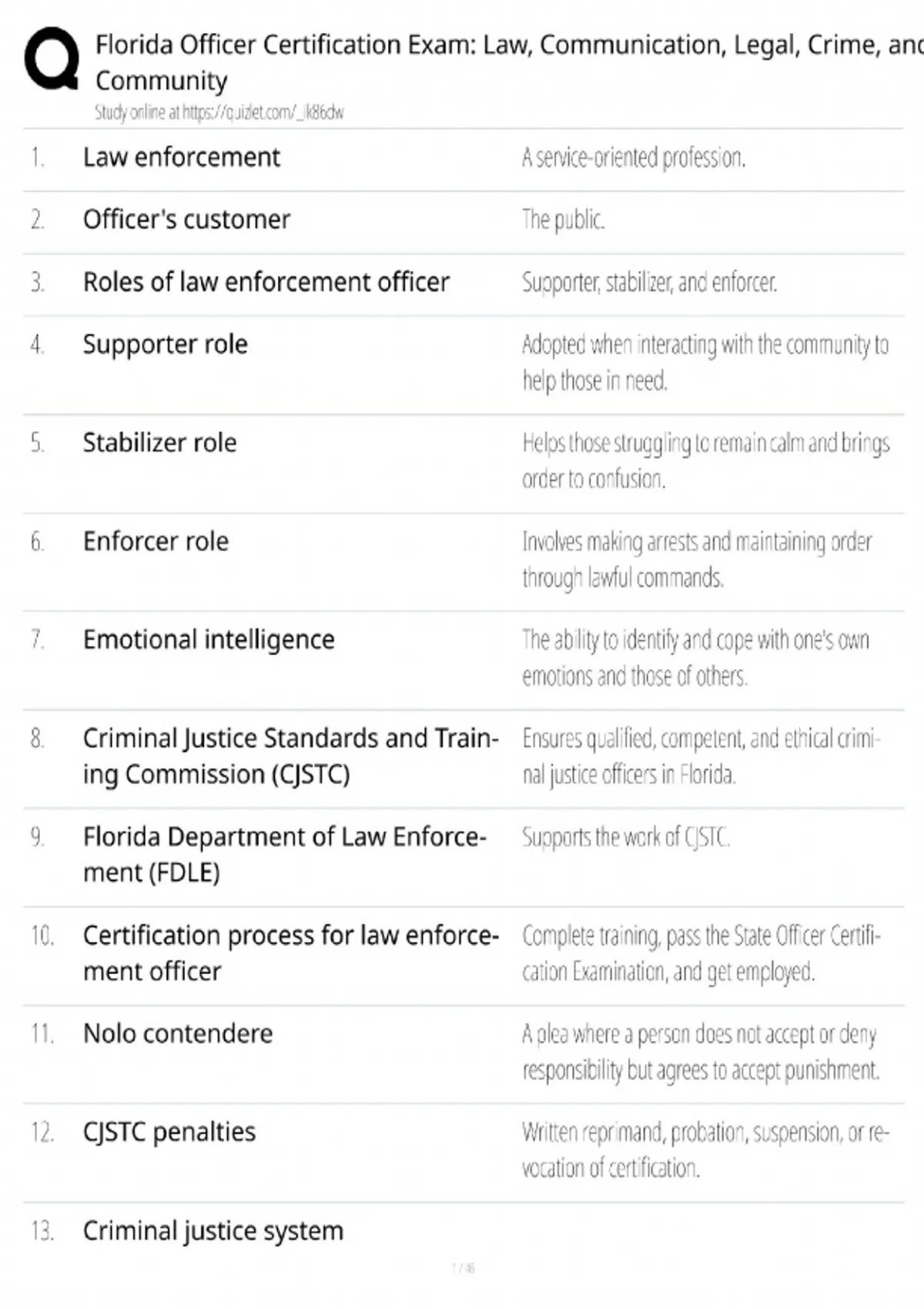 Florida Officer Certification Exam / Law, Communication, Crime & Community / Study Guide & Test Bank / Score 100% / 2025 Update