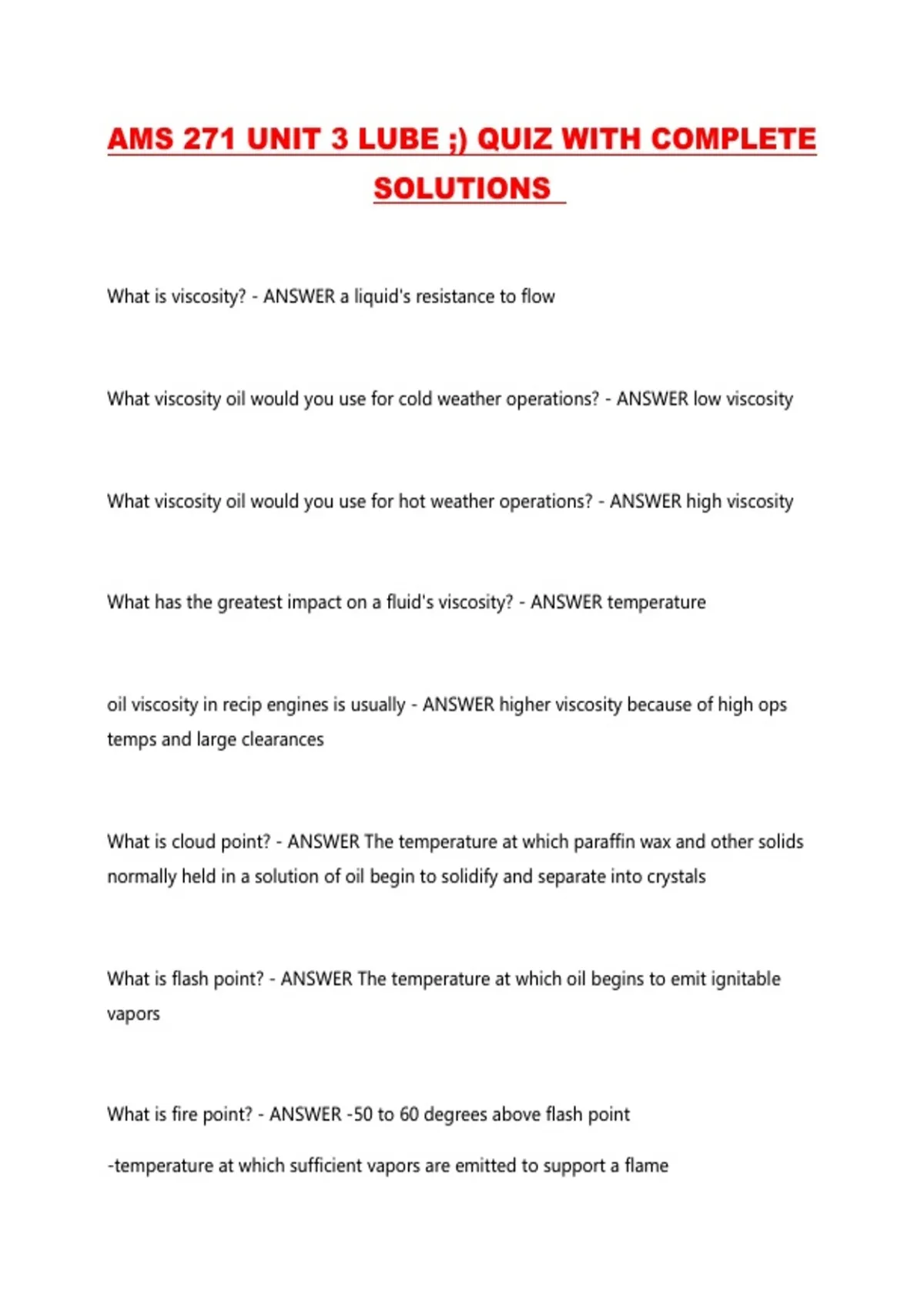 AMS 271 UNIT 3 LUBE ;) QUIZ WITH COMPLETE